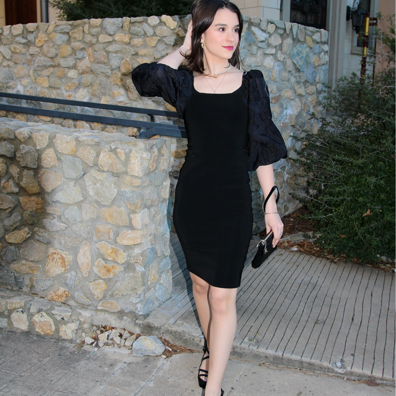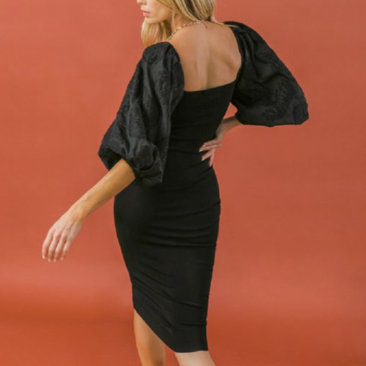 Beauty in Black Contrast Sleeve Bodycon Dress