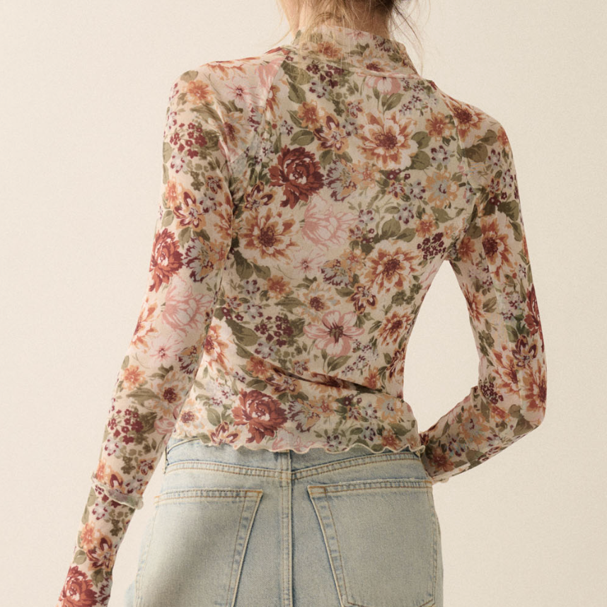 Floral Marvels Mesh Thumbhole High Neck Top - FINAL SALE