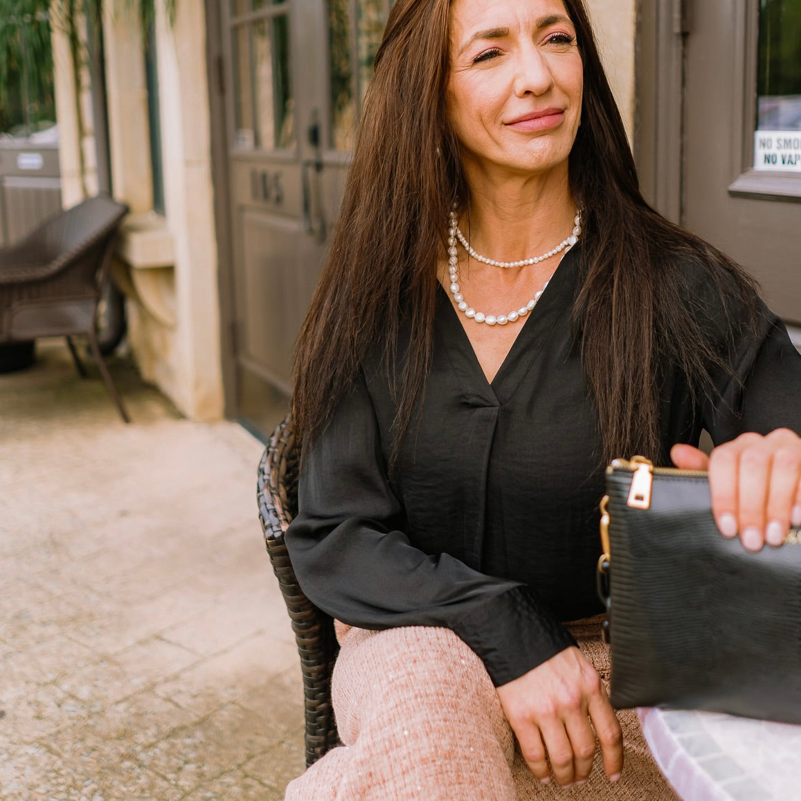 - Timeless elegance meets modern chic in our best-selling blouse! Crafted from soft, satin-like fabric, this blouse features a flattering drape, subtle sheen, and a sleek collar band detail that elevates any outfit. Perfect for the office, date night, or a dressy fall event - this top brings effortless sophistication to your wardrobe
