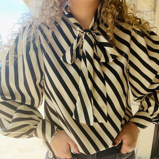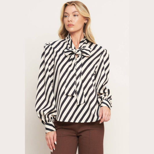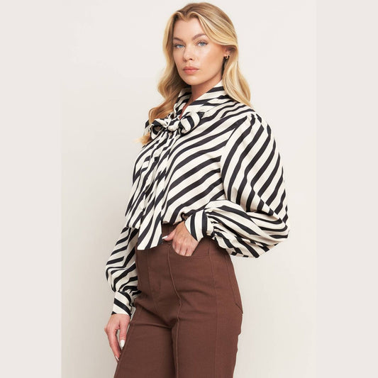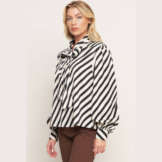 The Uptown Striped Bow Detail Blouse