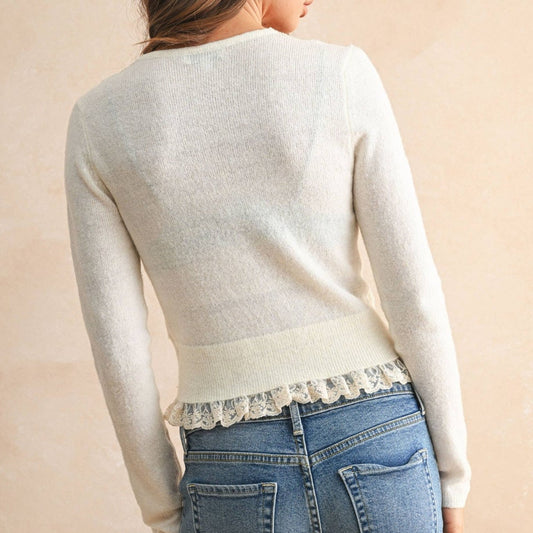 Rosalie Lace Contrasted Knit Cardigan Top