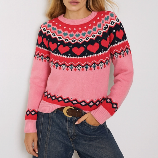 Sweet Amour Women's Nordic Heart Pattern Knit Sweater
