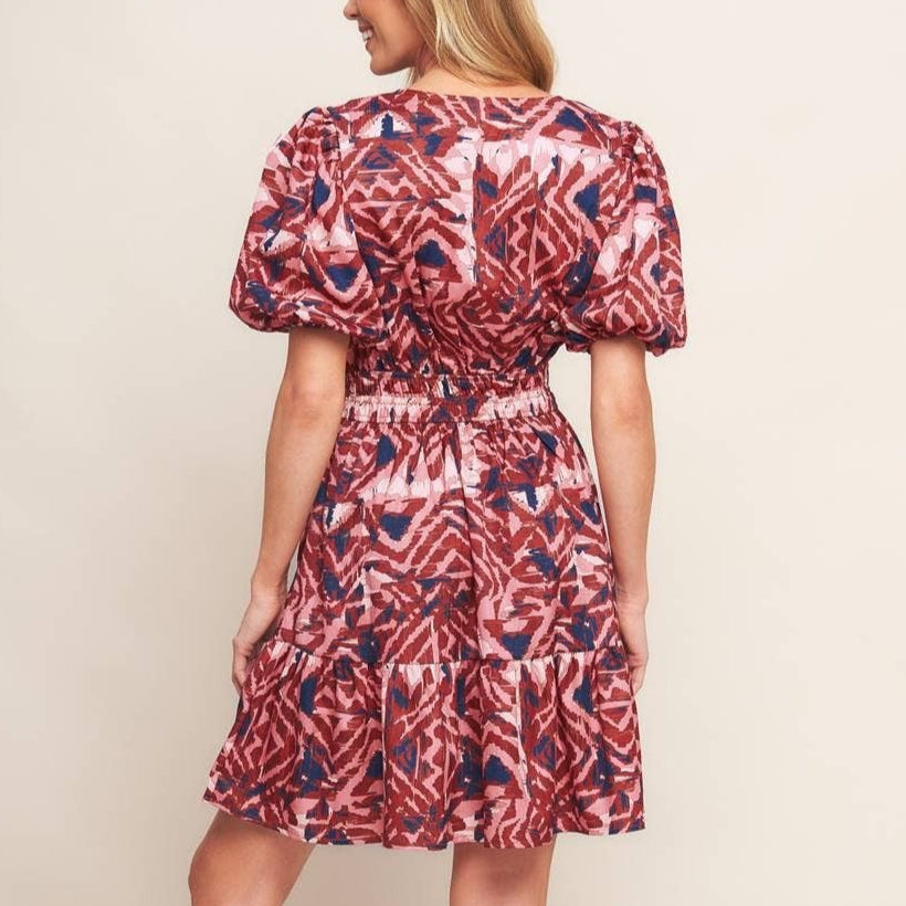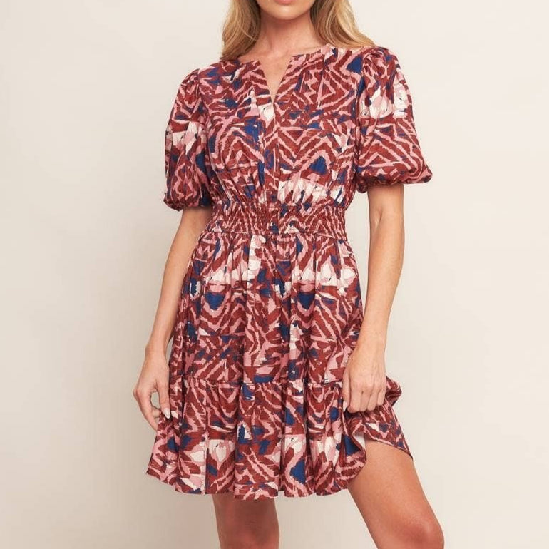 Bring rich fall vibes to life with this gorgeous multicolor mini dress in warm brown and navy tones. Designed with a flattering cinched waist, playful ruffled hemline, and feminine puff sleeves, it’s the perfect mix of chic and fun. Whether you’re headed to a fall wedding, a cozy dinner date, or just want to turn heads at your next outing, this dress makes a statement. Pair it with boots or heels to create a look that’s effortlessly seasonal and undeniably stunning.