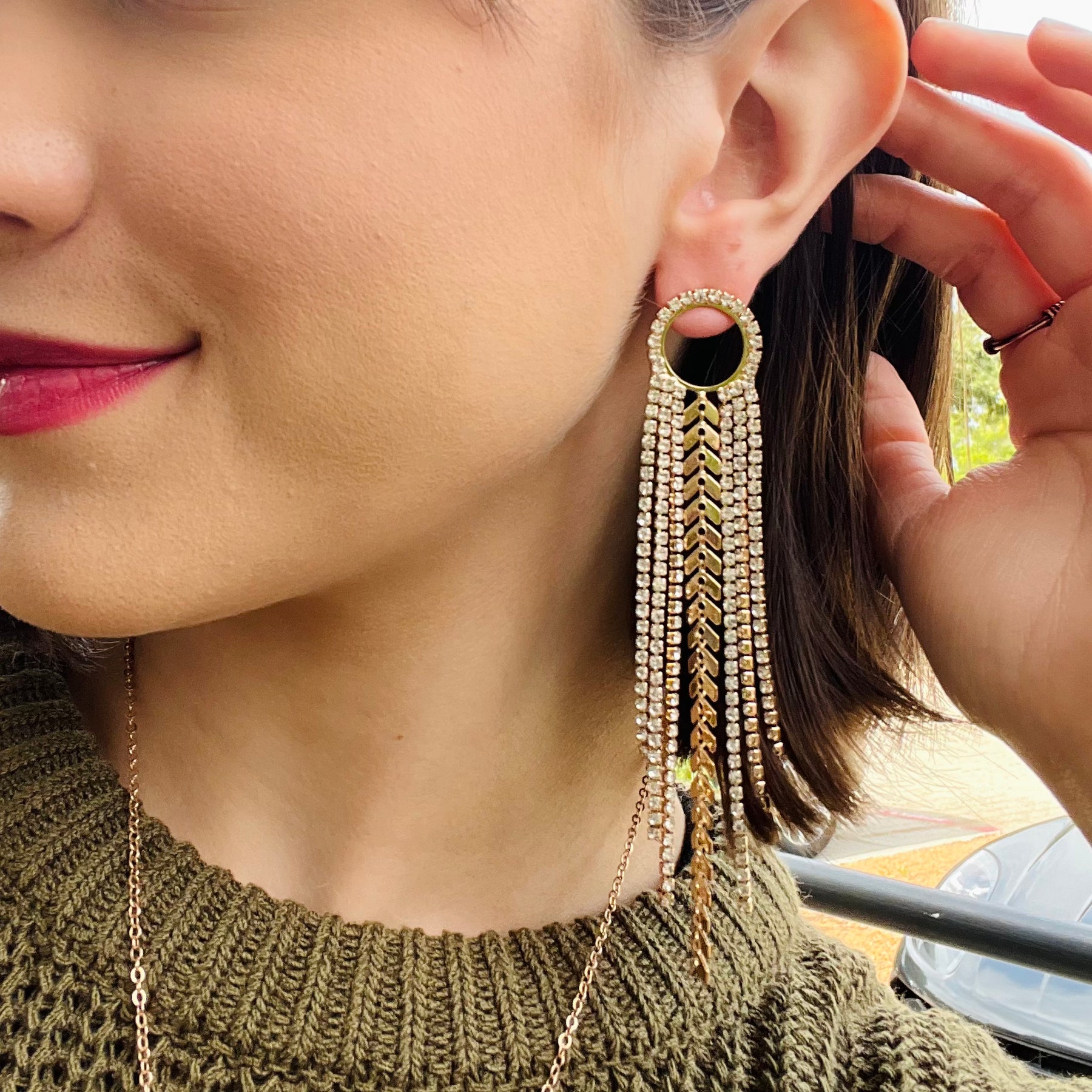 Make a statement with these bold, bohemian-chic tassel earrings that are anything but ordinary. With mixed metals, rhinestone fringe, and unique chain details, they bring an eclectic flair that’s perfect for the free-spirited fashionista. Lightweight and eye-catching, these earrings pair effortlessly with flowy maxi dresses, denim jackets, or even a sleek all-black outfit to add that touch of drama. Whether you’re headed to a concert, festival, or just want to elevate your everyday style, these unique earrings are the definition of boho glam.