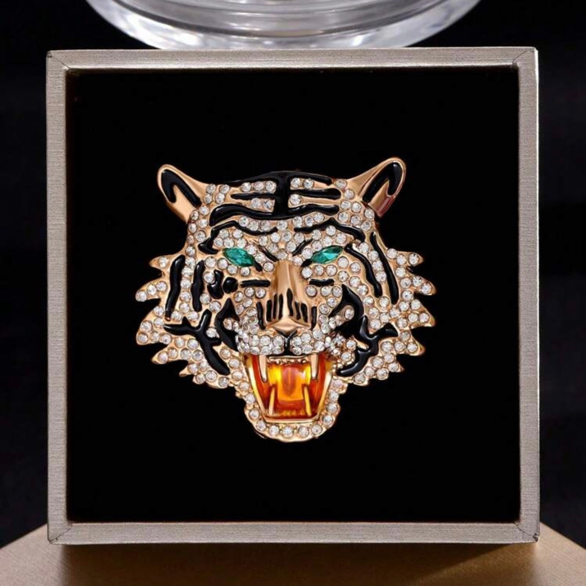 Unleash your wild side with our rhinestone tiger brooch! Covered in dazzling rhinestones, this fierce accessory adds bold sparkle and confidence to any outfit. Pin it on your jacket, blouse, or bag for an instant statement piece that roars with style. Perfect for the woman who loves a touch of glam and a little edge!