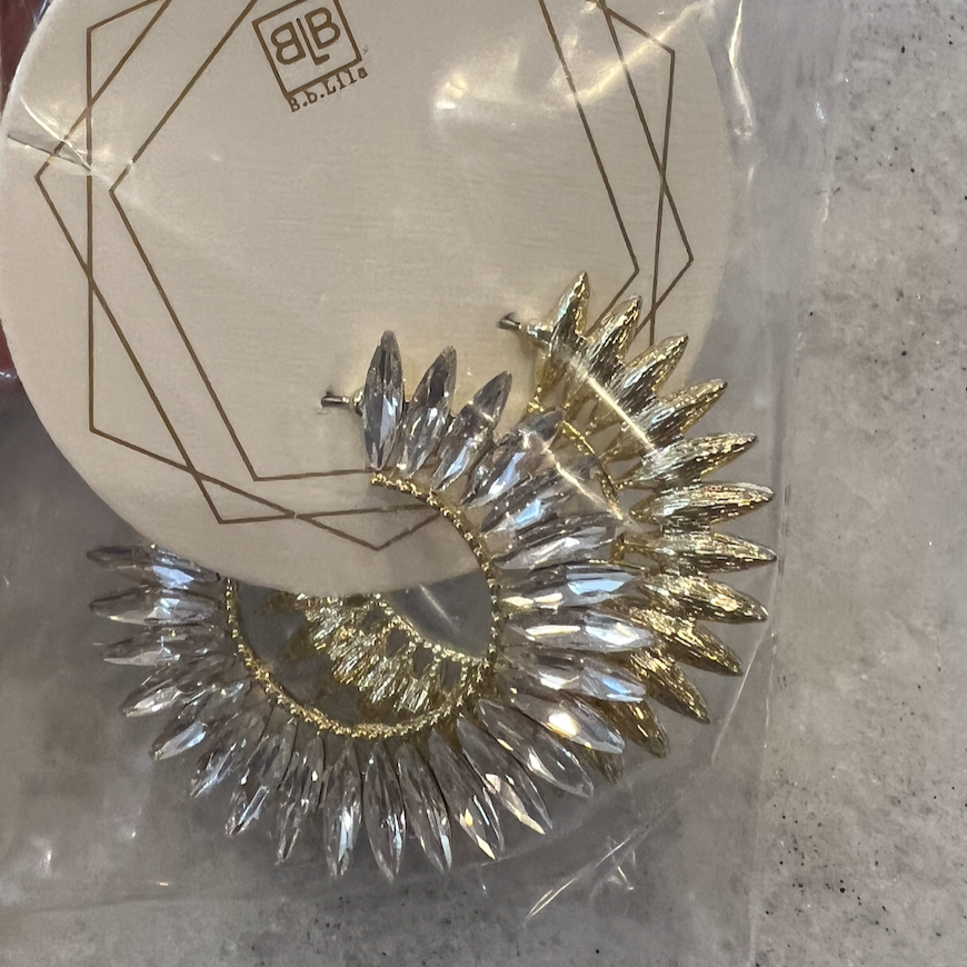 diamond hoops, pointy hoops, fun hoops, gold & diamond hoops, bedazzled hoops, rhinestone hoops, fun accessory piece, bachelorette, nashville, concert, gameday, sorority rush