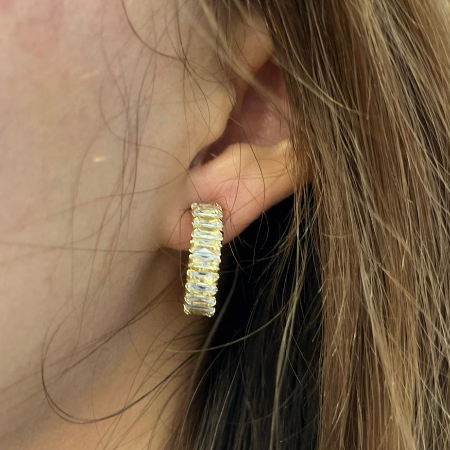 Our rhinestone hoop earrings bring the perfect touch of sparkle to any look. Featuring shimmering stones set in a sleek hoop design, they’re lightweight, eye-catching, and effortlessly glam!