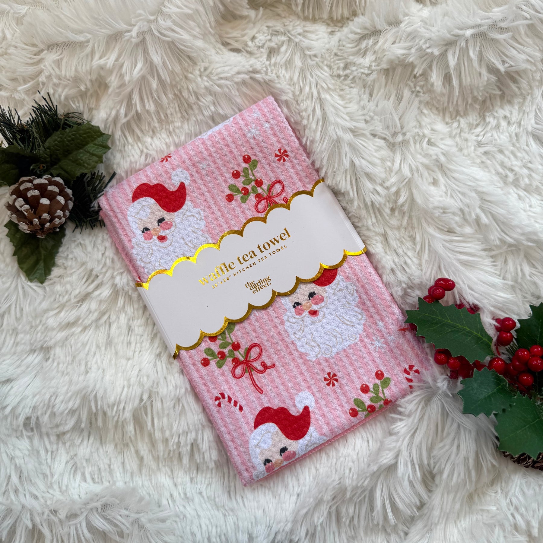 Bring a little girly glam to your holiday kitchen with the Santa Baby Towel. This pink waffle-weave tea towel is soft, absorbent, and quick-drying - perfect for both decoration and daily use. Featuring a multicolor Santa design with festive holly details, it’s just as functional as it is adorable. Whether you’re dressing up your holiday décor, gifting to a hostess or teacher, or adding a pop of pink cheer to your own space, this towel is the cutest way to celebrate the season in style.
