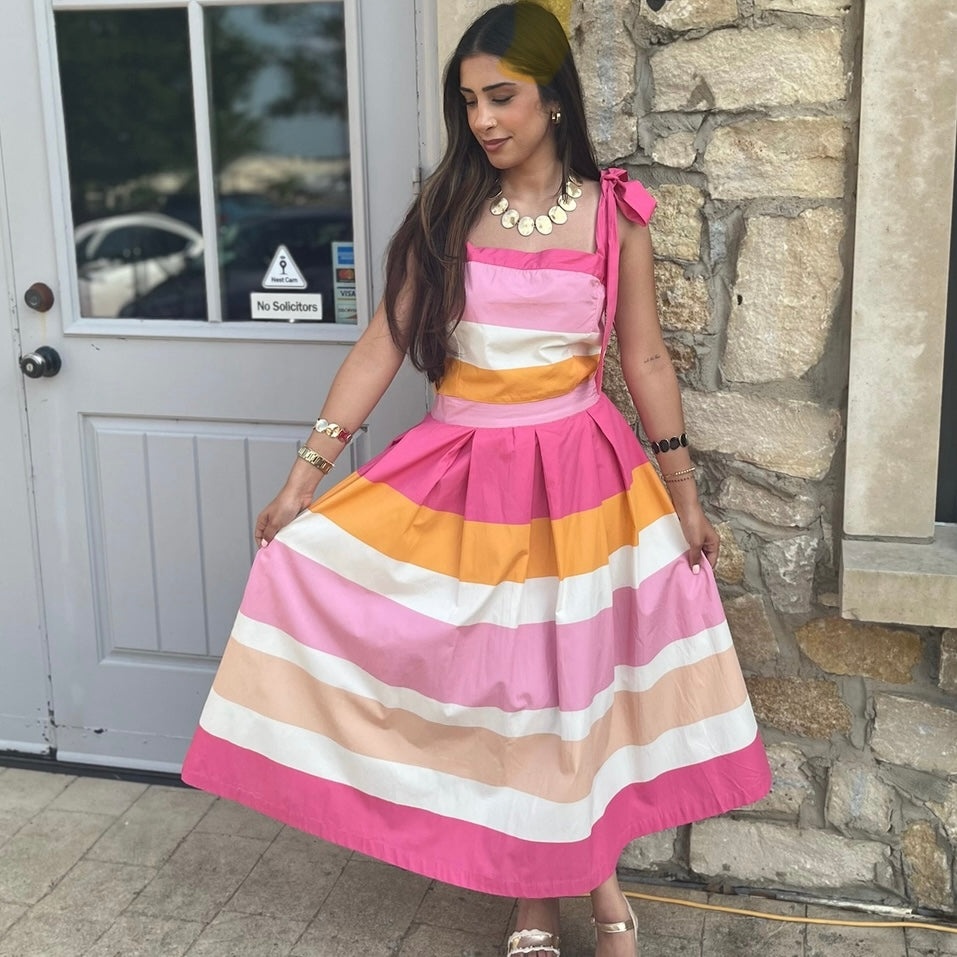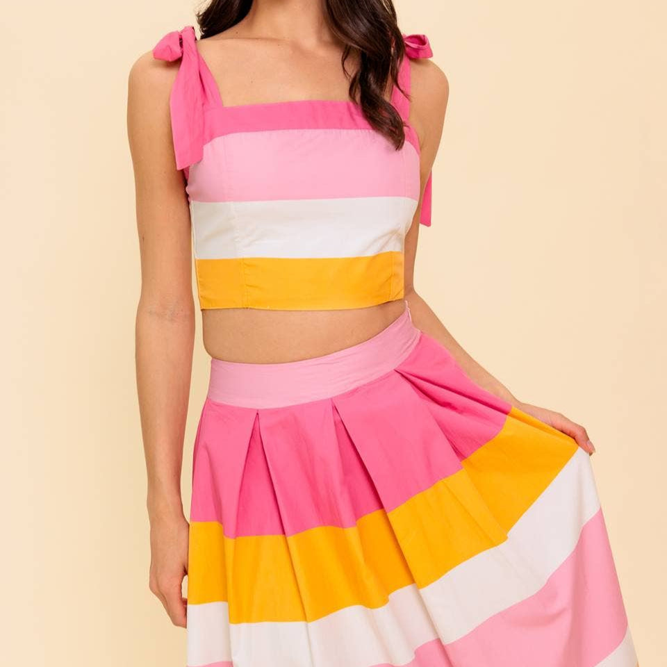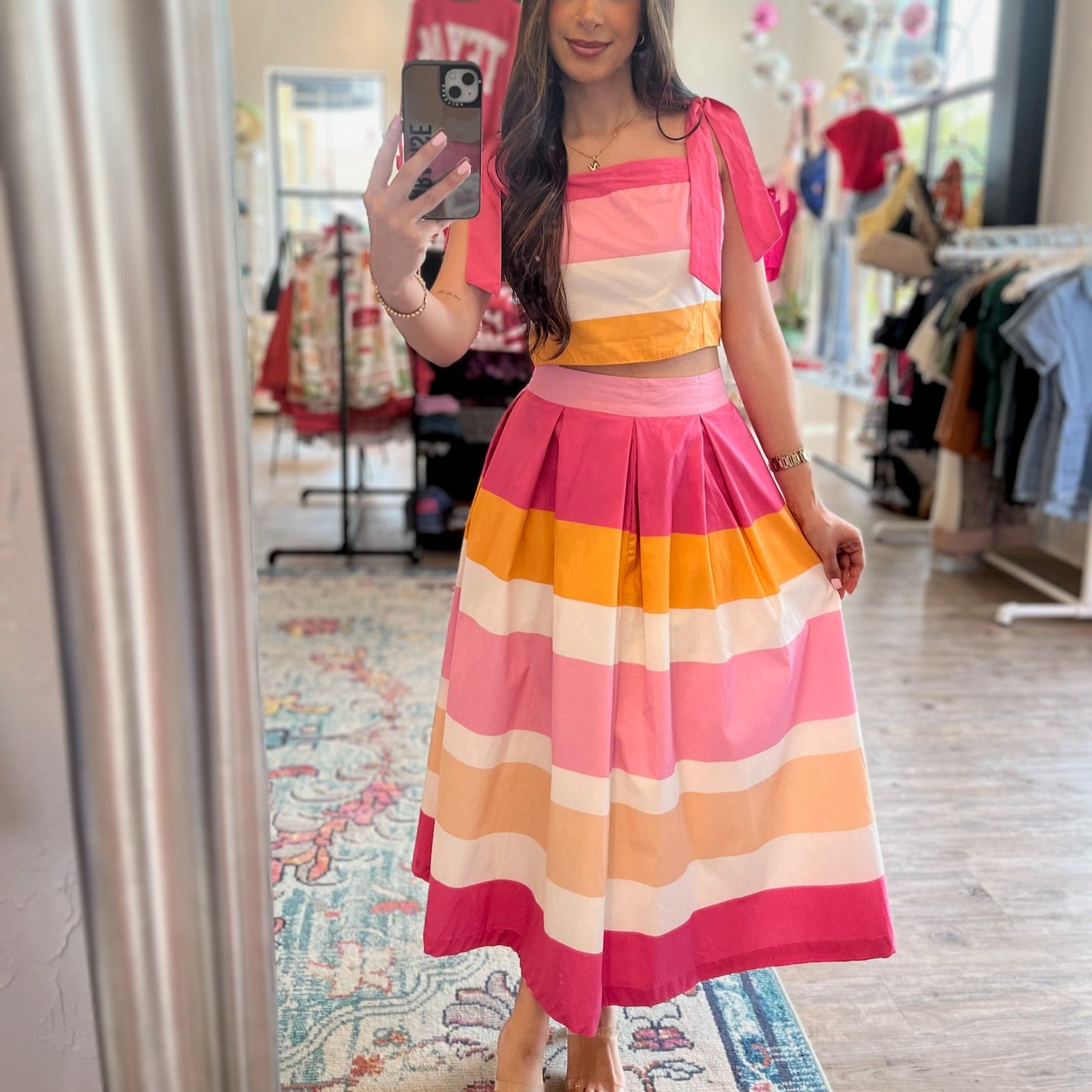 - Summer of stripes is here! And this matching 2 piece set is the cutest outfit- stylish with a pop of color!