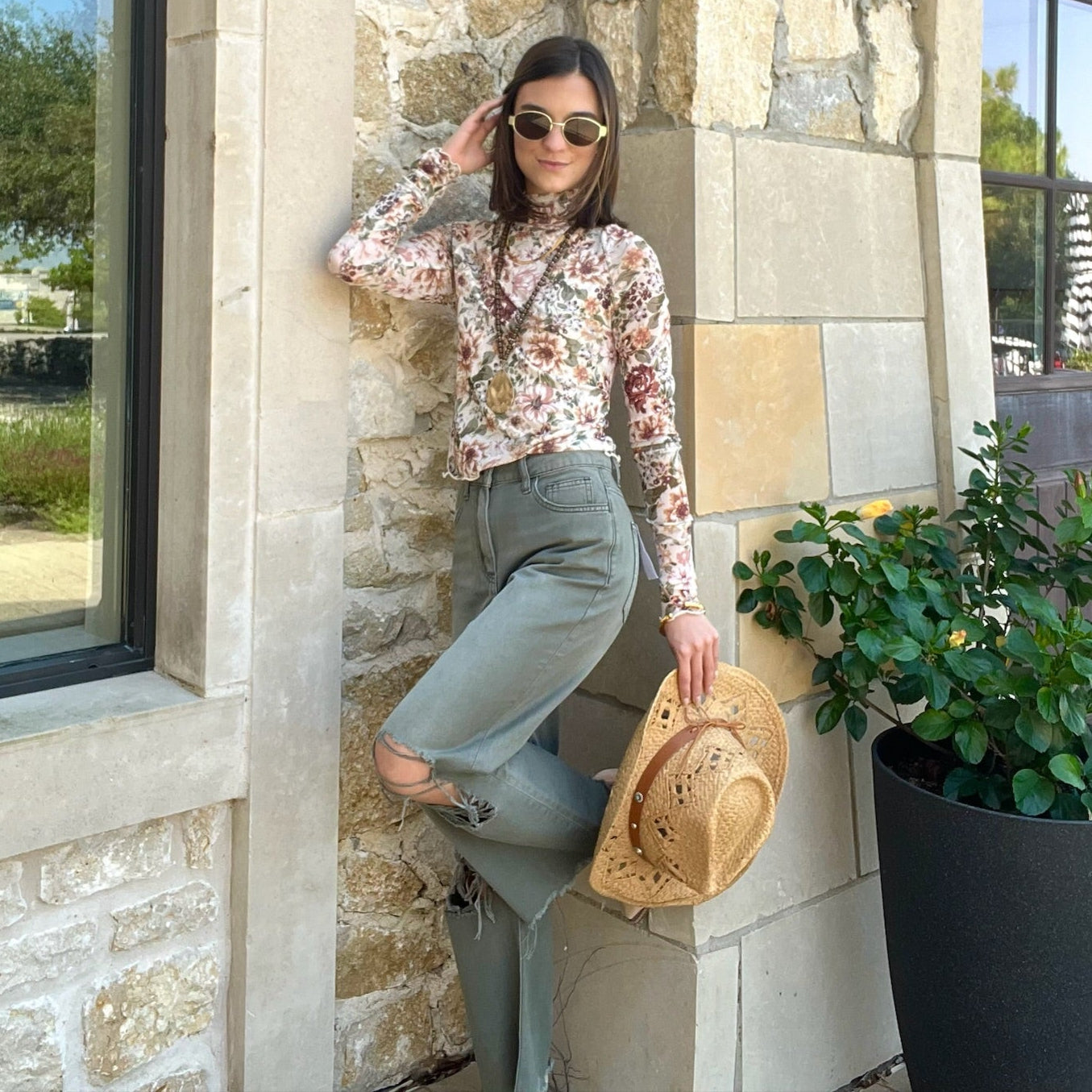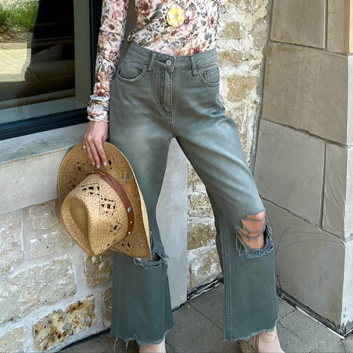 Billie 90's Distressed Vintage Crop Jeans in Washed Olive- FINAL SALE