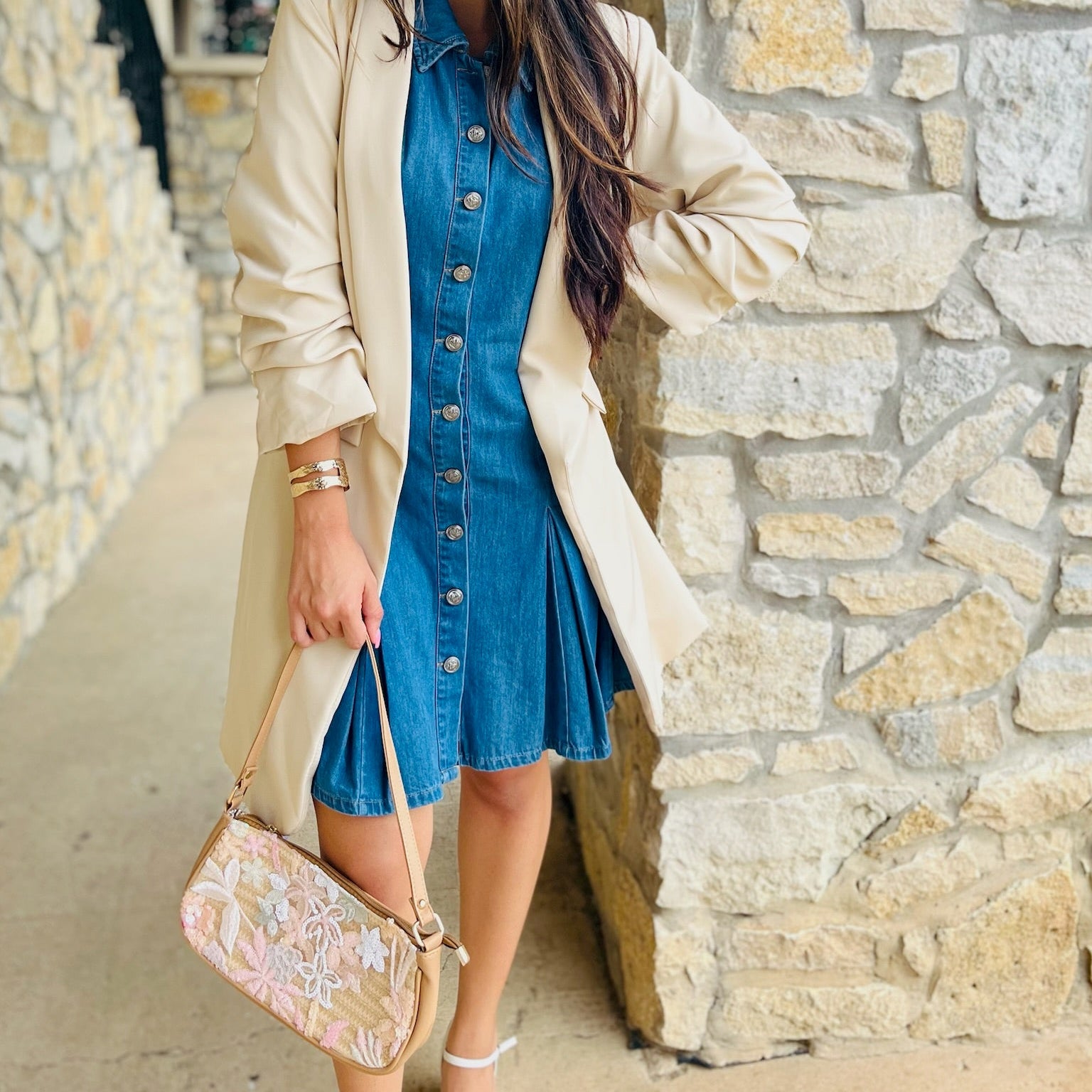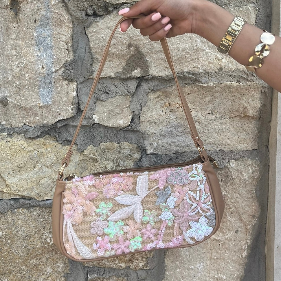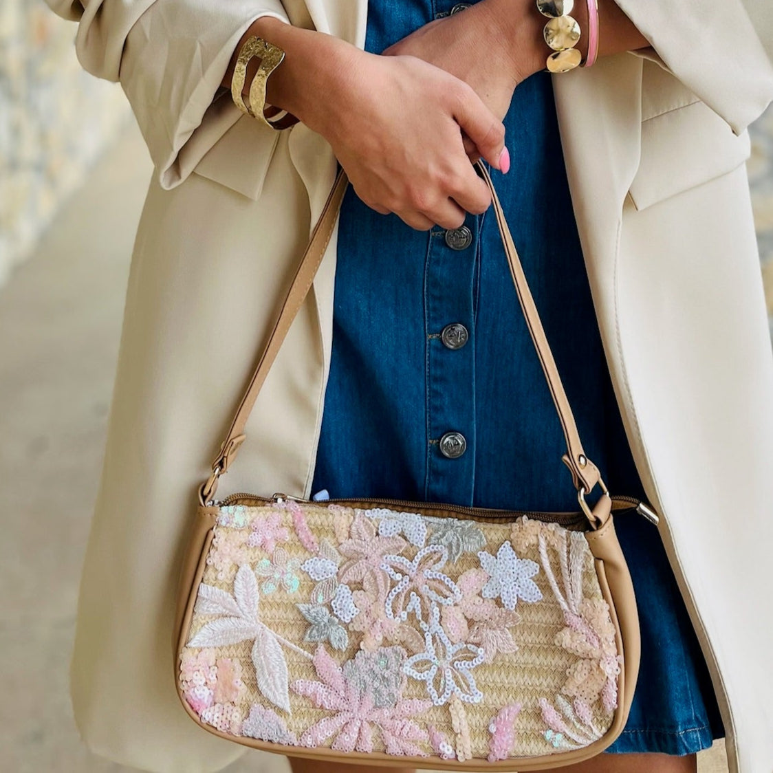 Our summer sequin woven purse is your new go-to for sunny days and starry nights. Trendy woven look and sprinkled with just the right amount of shimmer, it’s the perfect mix of boho charm and beachside glam!
