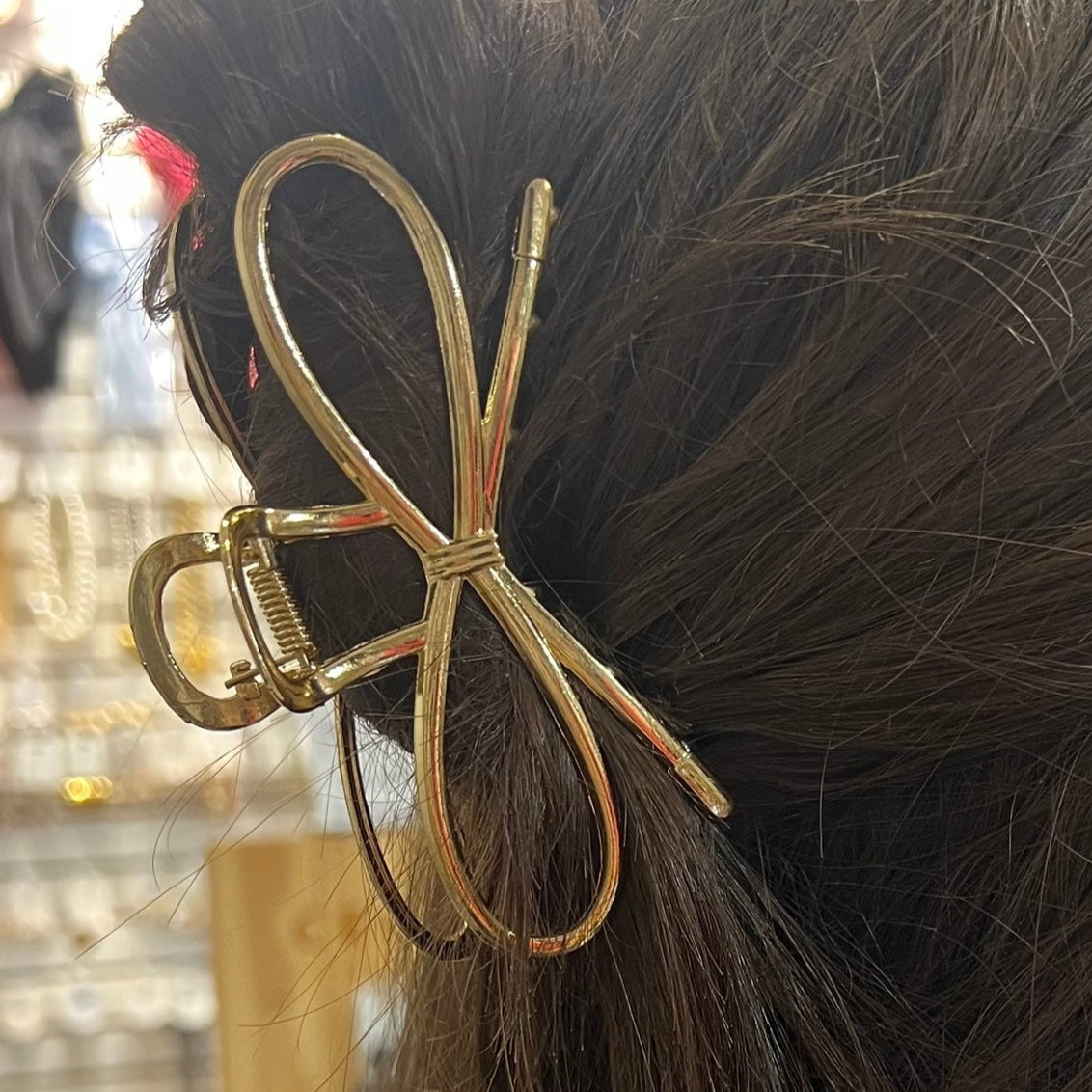 - Elevate your everyday hairstyles with this sleek gold bow claw clip. Perfect for half-up, half-down looks, chic buns, or securing all your hair on busy days, it’s as versatile as your schedule. Lightweight yet sturdy, it holds your hair with ease, making it a go-to for everything from coffee runs to brunch dates, work meetings, or last-minute errands. Compact and stylish, it’s easy to keep in your bag so you can refresh your look anytime - effortless style wherever you go.