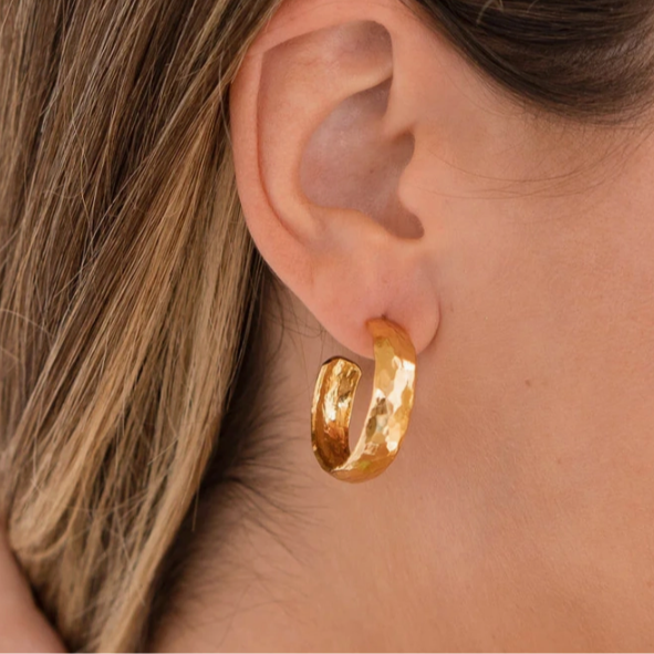 Brenda Grands Sicily Gold Hammered Hoops