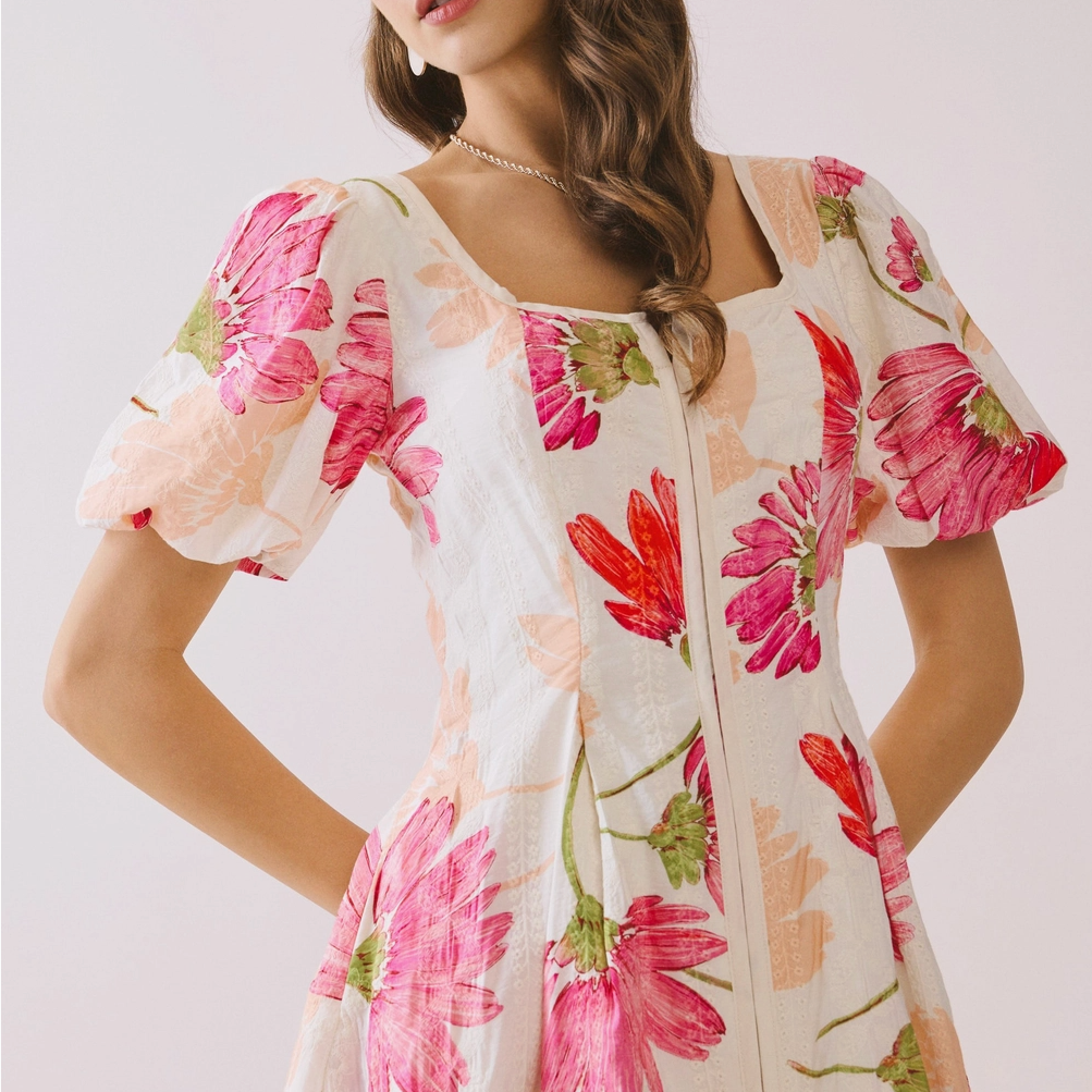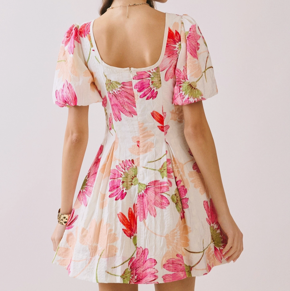 Sweetly structured with a playful touch, our Floral Print Flare Skirt Fit and Flare Mini Dress features a flattering fitted bodice and a flared skirt that moves beautifully with every step. Finished in a timeless floral print, it’s perfect for dates, daytime celebrations, and sunny-day outings!