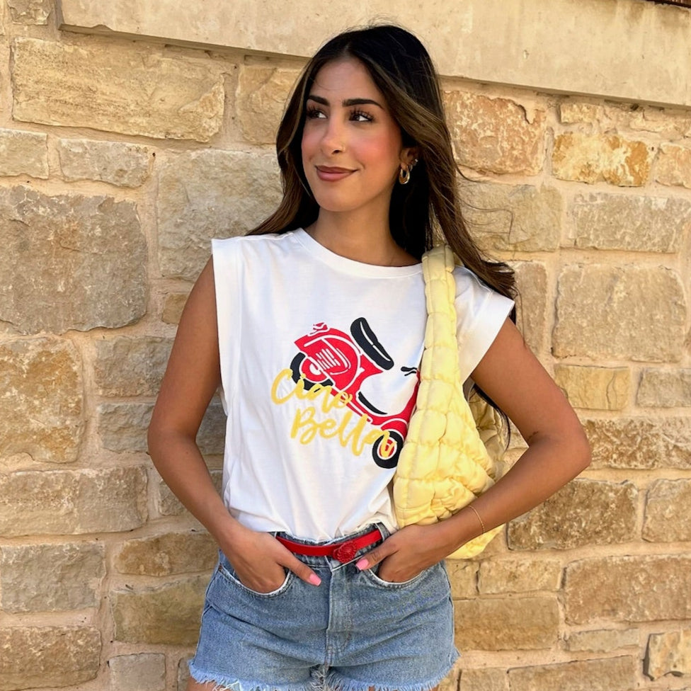 - Say hello to this adorable little graphic tee! It's the perfect easy, breezy, shirt, great for all the upcoming heat!