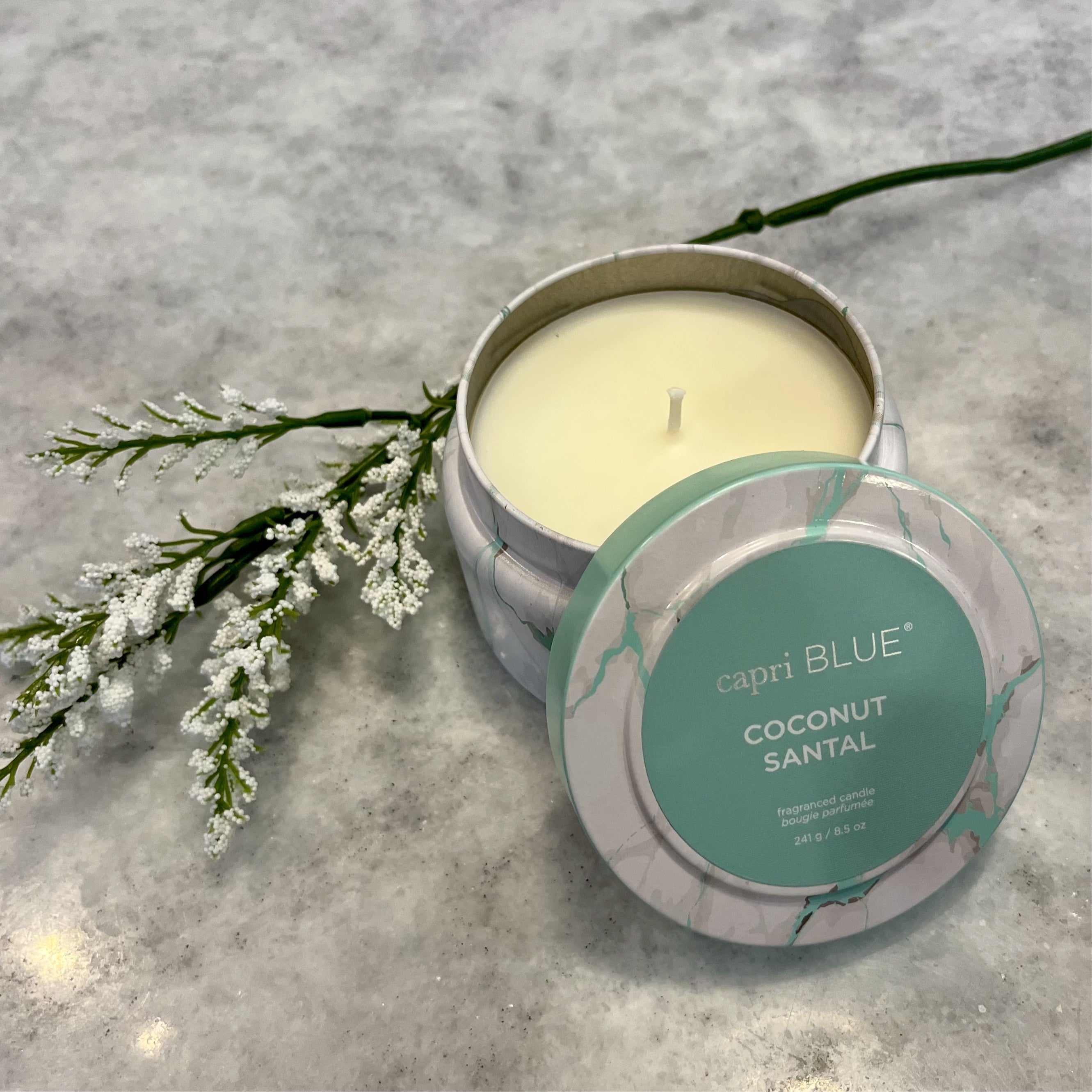 Coconut Santal 8.5oz Modern Marble Aqua Travel Tin