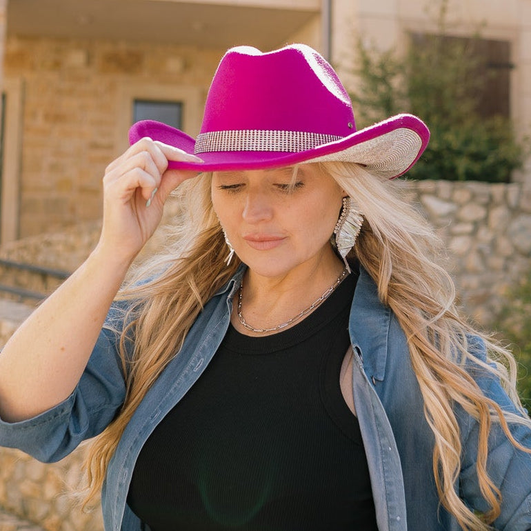 - Be a real cowgirl in this eye-catching rhinestone cowboy hat!