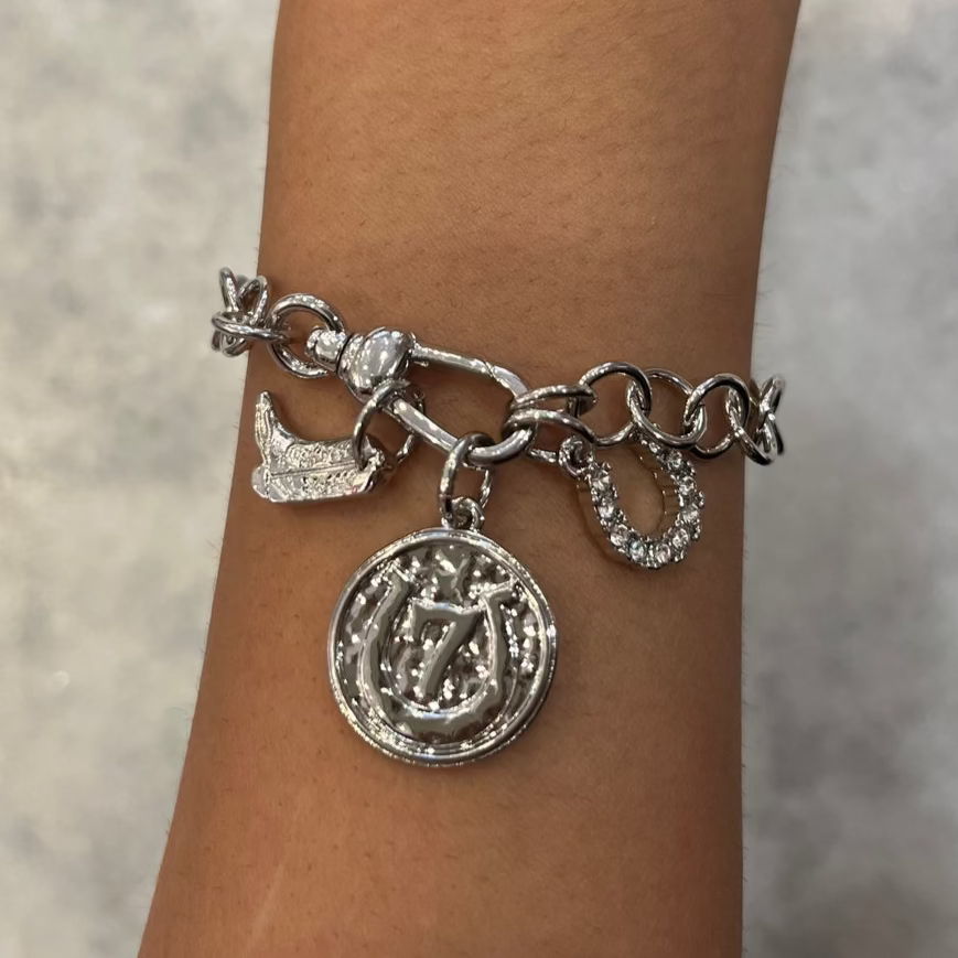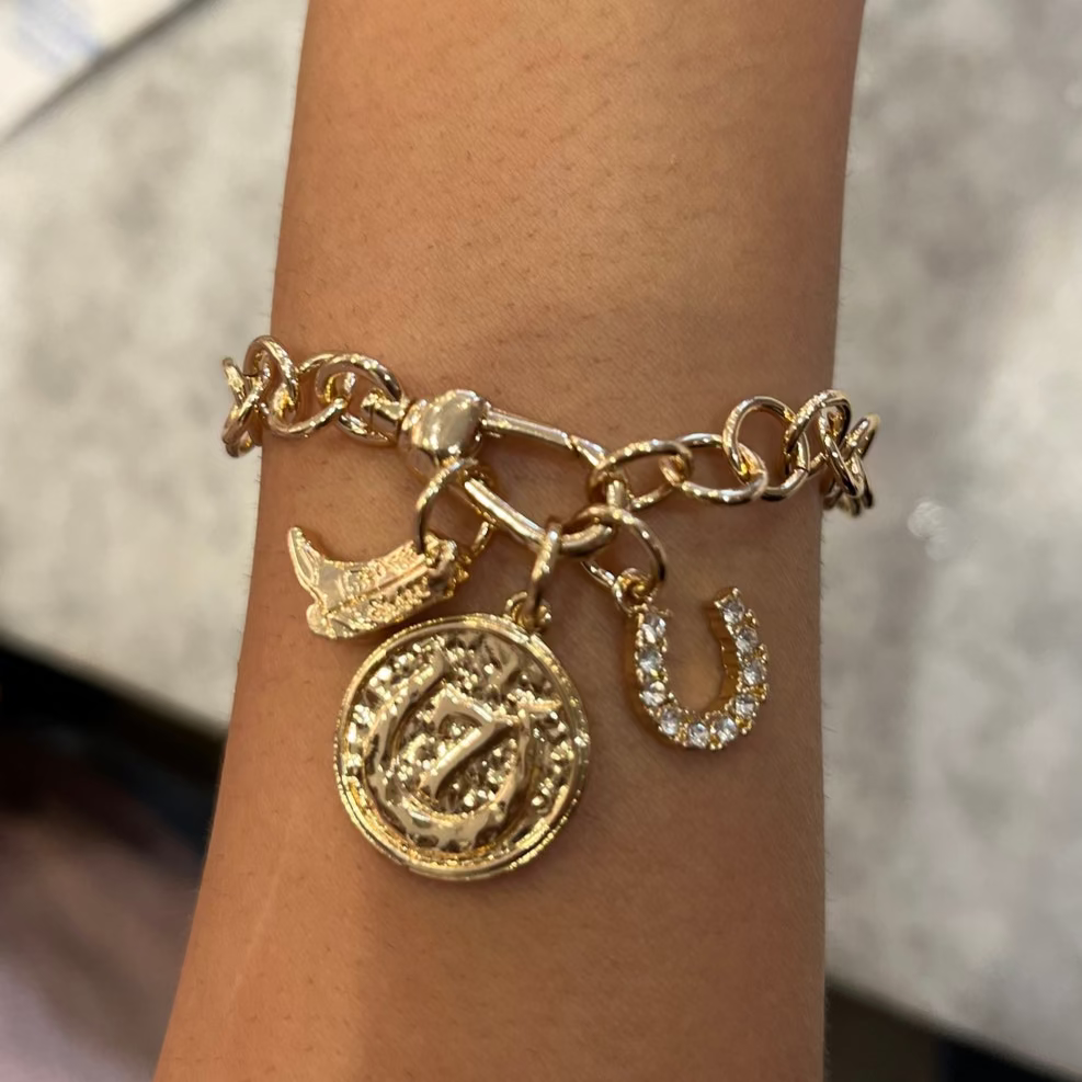 Saddle up your style with these western-inspired charm bracelets that are giving total boho cowgirl princess vibes. Featuring bold boot, horseshoe, and horseshoe pendant charms with just the right touch of rhinestone sparkle, these bracelets are the ultimate nod to our love for cowboys. Adjustable to fit your wrist comfortably, they make a statement on their own but also layer beautifully with other chains and bangles. Whether you’re headed to a country concert, a night out, or just want to show off your western spirit, this bracelet is the perfect finishing touch.