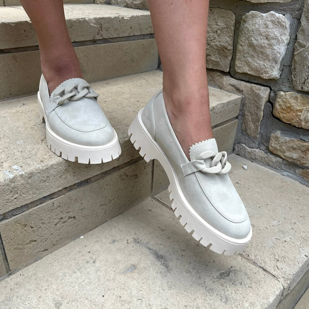 Our Matte Finished Chunky Chain Detail Lug Sole Loafer is where modern edge meets timeless charm. Crafted with a smooth matte finish, this loafer features a statement chunky chain across the vamp for a touch of elevated attitude. The thick lug sole adds height and grip, delivering all-day comfort with a fashion-forward twist. Whether you’re dressing up or down, this versatile shoe is your go-to for effortless cool.