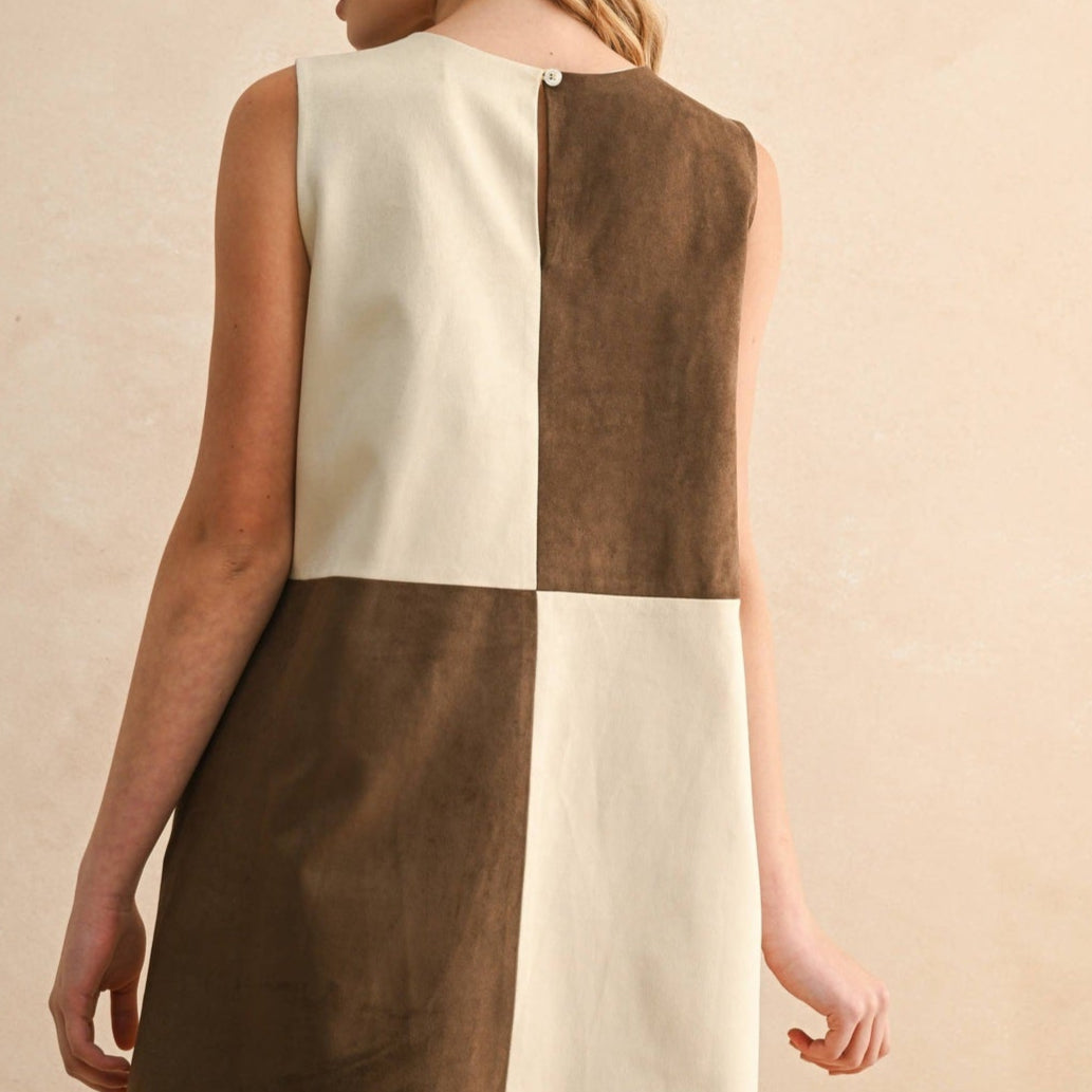 colorblock dress, suede shift dress, neutral colorblock dress, brown and cream dress, charcoal colorblock dress, fall shift dress, boutique fall fashion, suede feel dress, structured mini dress, casual to dressy outfit, timeless neutral dress, soft suede-like dress, versatile fall dress, women’s colorblock outfit, chic neutral tones, fall layering dress, minimalist shift dress, sophisticated fall style, boutique suede dress, transitional fall fashion, cozy yet chic dress, modern colorblock look, neutral sue