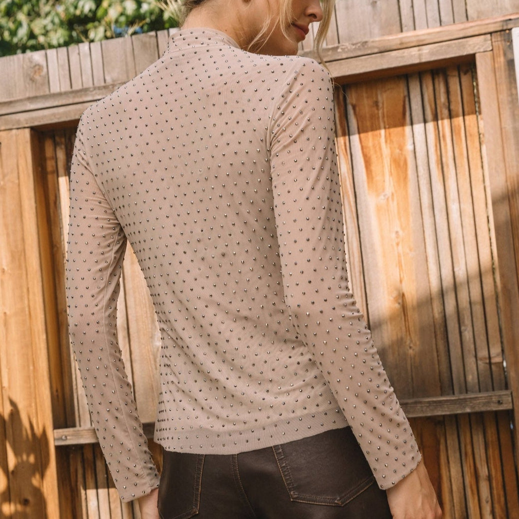 From country concerts to holiday parties, this top is the definition of sophisticated sexy. With its sheer sleeves, mock neck, and delicate embellishments, it brings a polished yet playful edge to any outfit. Style it effortlessly with denim for a girls’ night out, pair it with leather pants or a satin skirt for an elevated evening look, or layer it under jumpsuits and blazers for added chic. Lightweight and versatile, this piece is perfect for dressing up your wardrobe all season long.