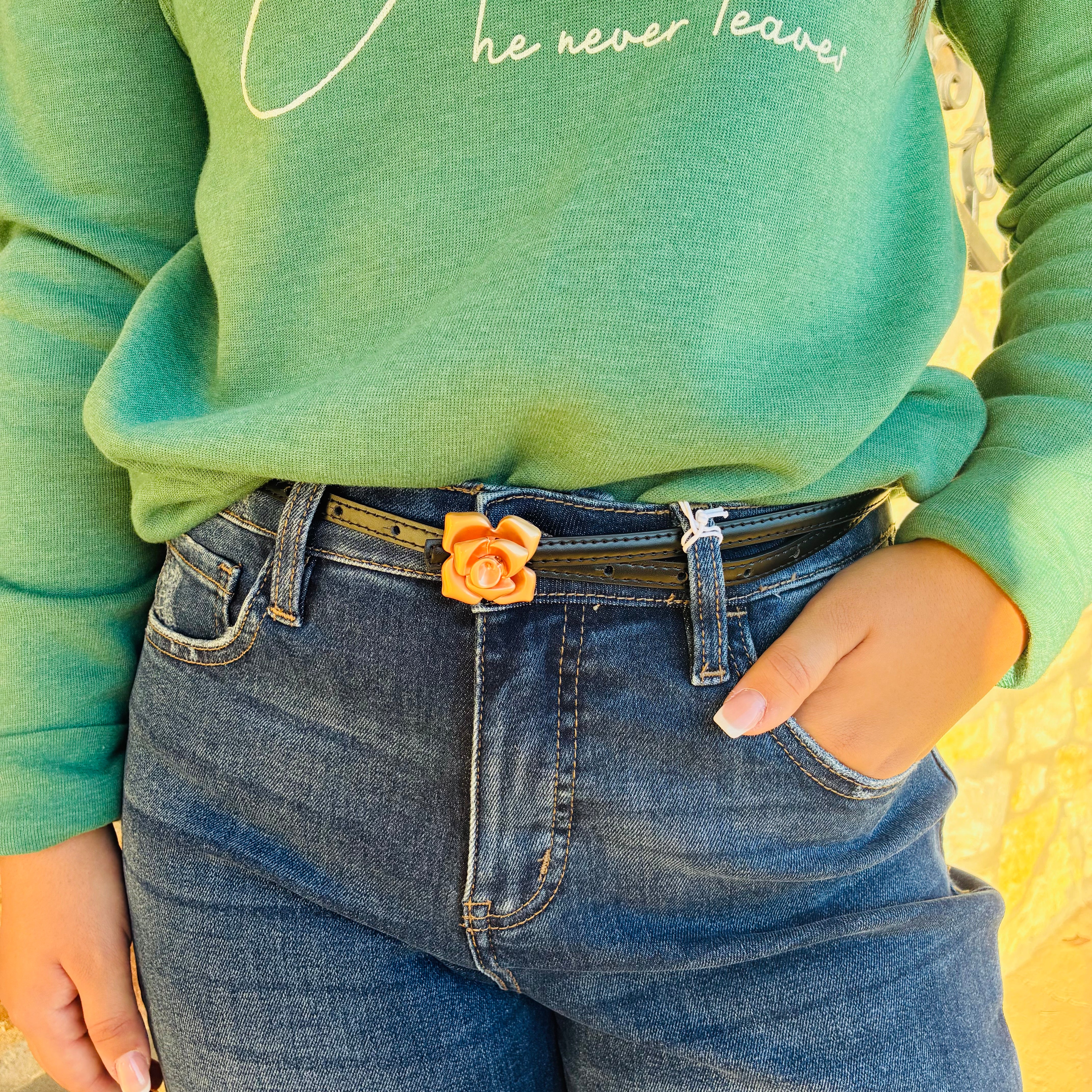 The perfect finishing touch. This floral belt adds a touch of feminine charm while keeping your look polished and modern. Pair it with dresses, skirts, or high-waisted pants for effortless style!