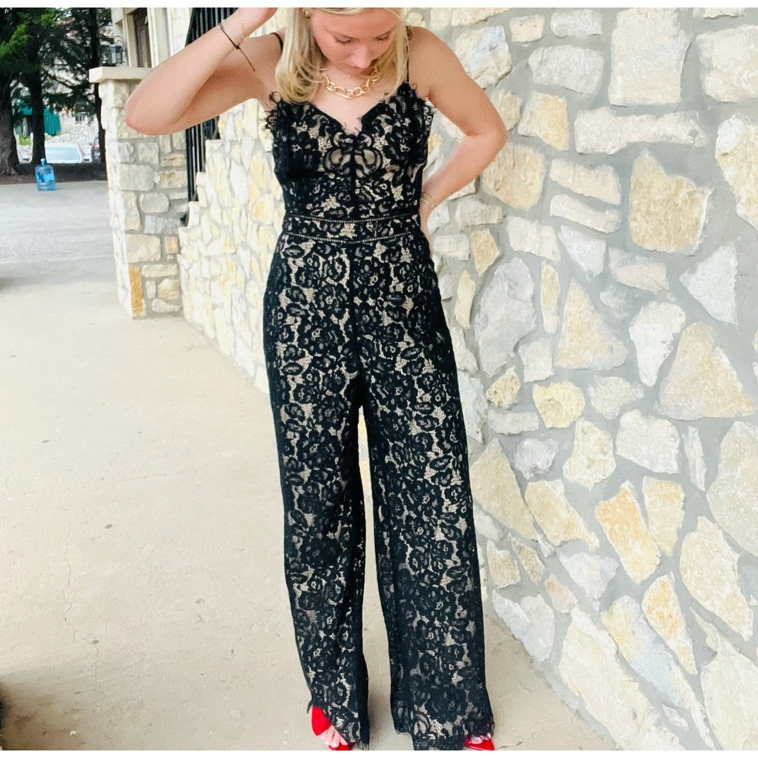 Turn heads in this stunning jumpsuit - a true star-of-the-show piece made for unforgettable nights. With its sparkling lace and sequin detail, flattering silhouette, and statement design, this jumpsuit takes you from mom’s night out to higher-end events, concerts, rodeos, or even trips to Nashville or Vegas in style. Dress it up with heels and statement earrings or give it a country-chic twist with boots and a fringe jacket. No matter how you style it, this jumpsuit is all about confidence, glamour, and making an entrance.