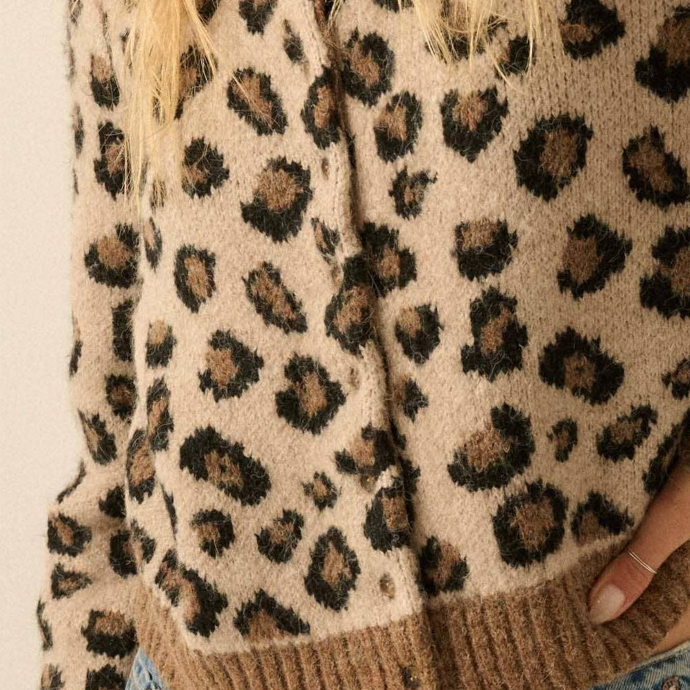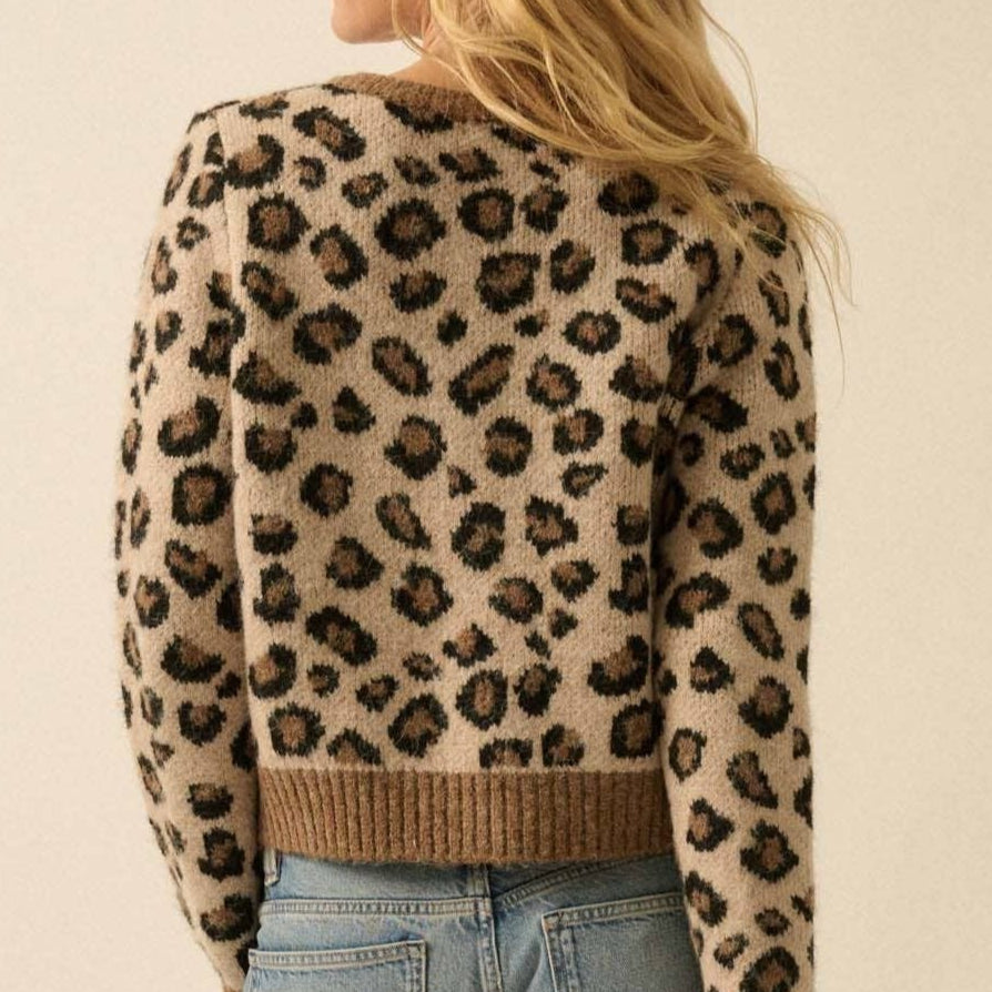 - A timeless classic with a wild twist - this leopard knit cardigan is the perfect layer for every season. Style it buttoned with high-waisted denim for a chic fall look, drape it over dresses in the spring, or pair it with leather pants in the winter for an edgy vibe. Its cropped fit keeps it modern, while the bold pattern ensures it never goes unnoticed. Whether you’re headed to work, brunch, or a casual night out, this cardigan is a versatile staple you’ll reach for again and again.