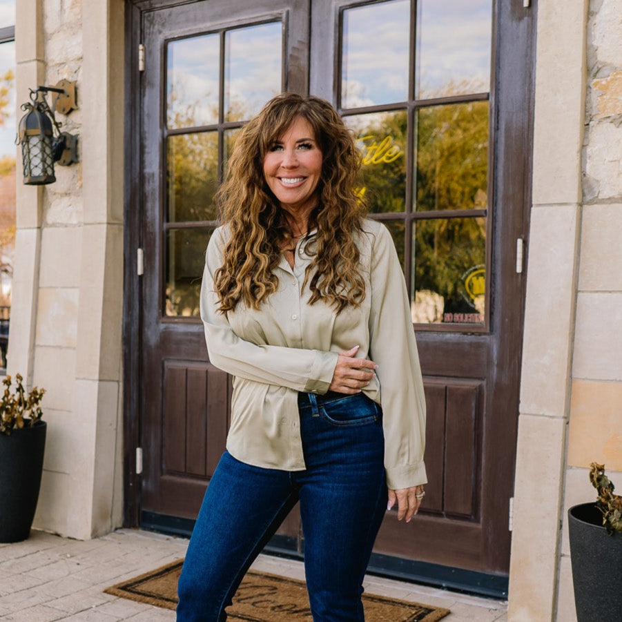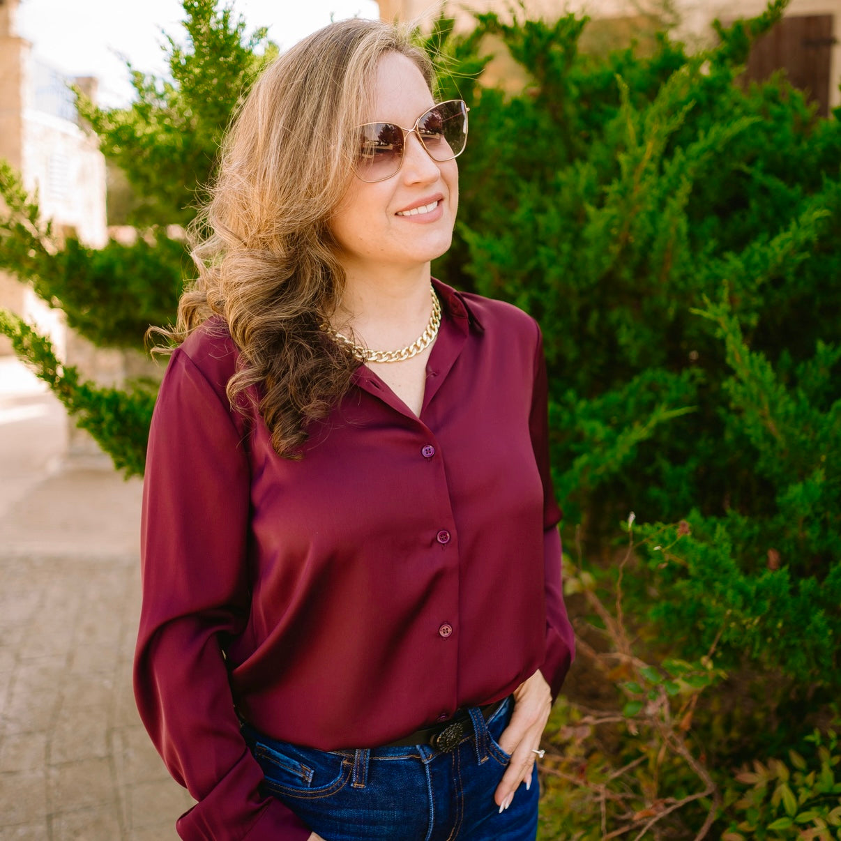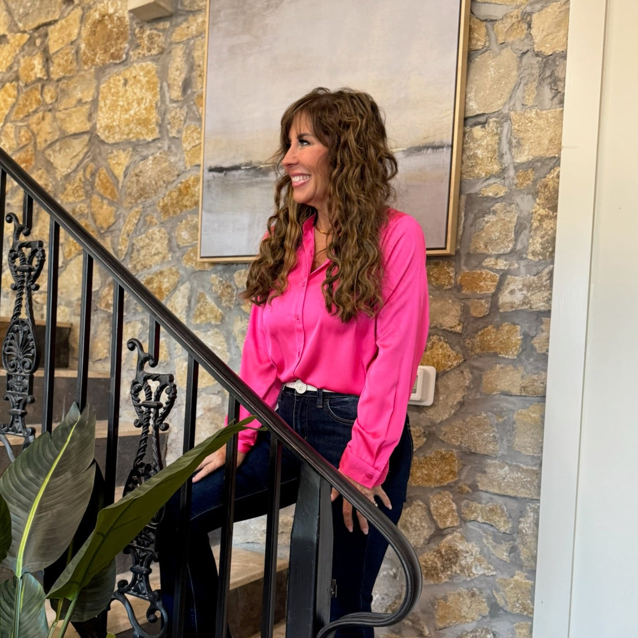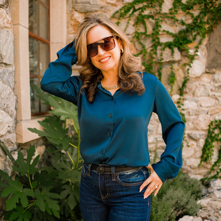 satin blouse, silky button up top, classic collared blouse, long sleeve satin shirt, relaxed fit blouse, polished work blouse, date night top, chic satin button down, versatile wardrobe staple, timeless satin blouse, soft silky feel blouse, solid color satin top, elevated everyday blouse, office to evening top, best selling satin blouse, smooth satin shirt, recycled polyester blouse, sophisticated satin top, dressy casual blouse, effortless chic satin blouse