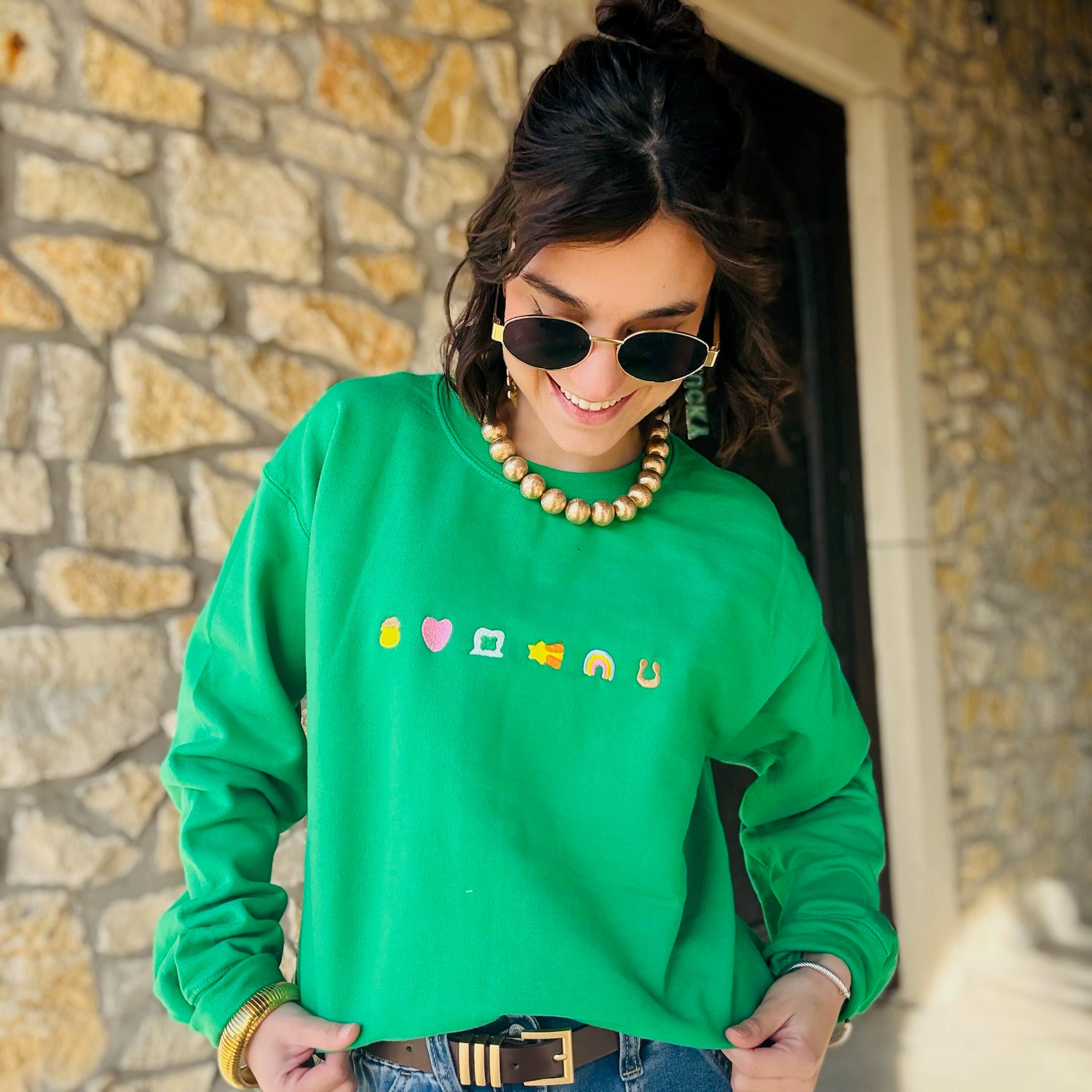 Lucky Charms Embroidered Green Sweatshirt