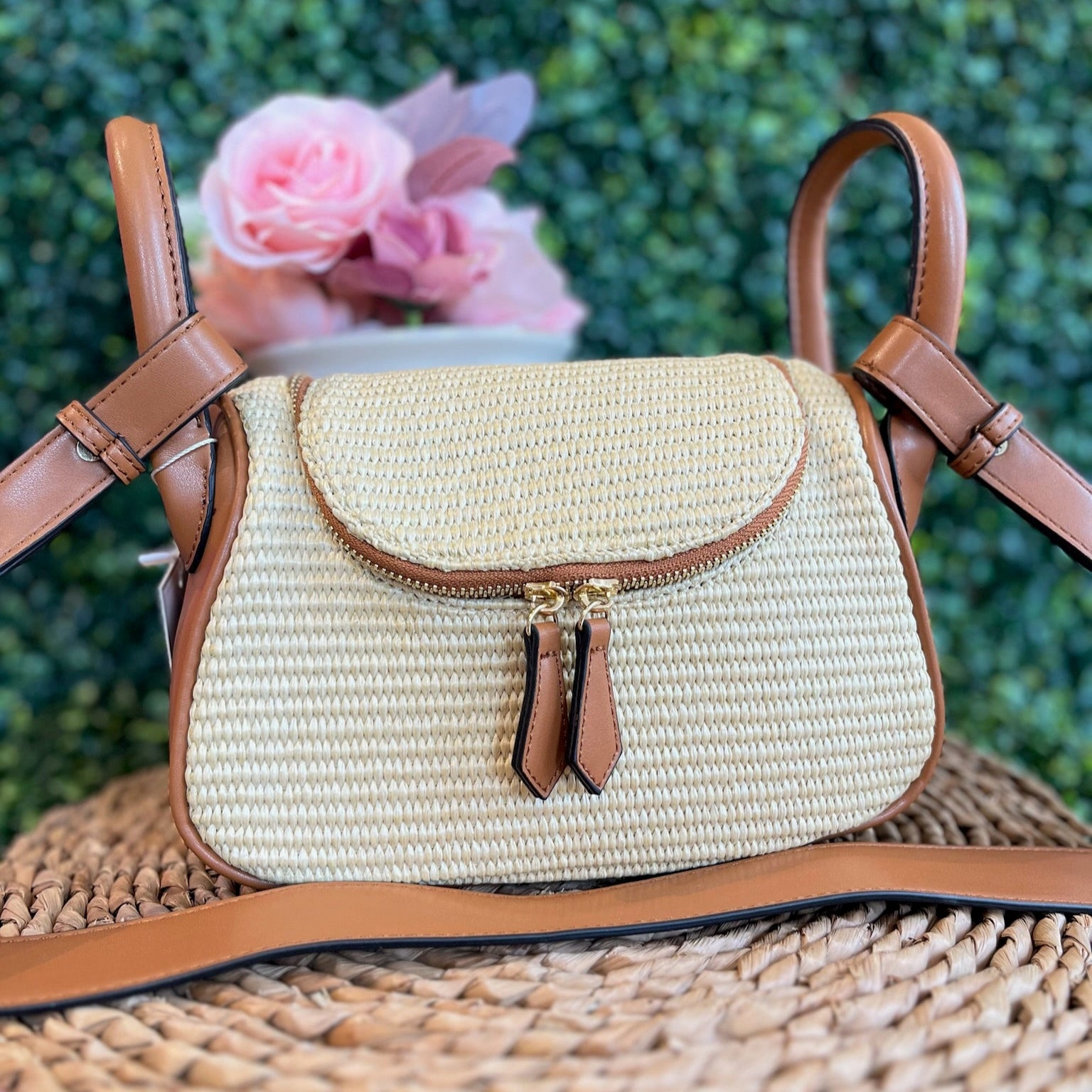 - For all of you looking for a spring / summer staple bag, this is it! It's a gorgeous woven straw design with a unique design element!