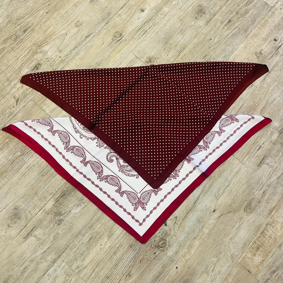 - Add a playful pop of color to your outfit with our maroon polka dot bandana. Perfect to tie around your neck, style in your hair, loop on your boots, or clip to your bag, backpack, or belt. Versatile and fun, it’s a stylish way to support your favorite team, like Texas A&M, or just add some personality to any look. Wear it solo or layer it with other accessories for effortless flair.
