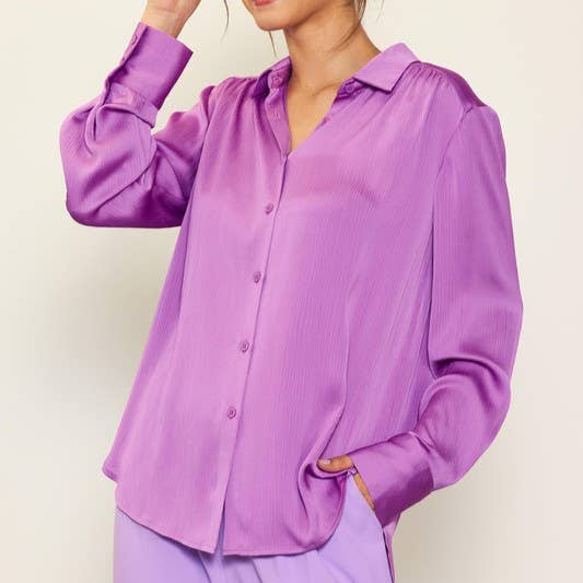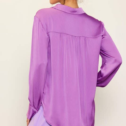 Polished Edge Crinkled Satin Blouse