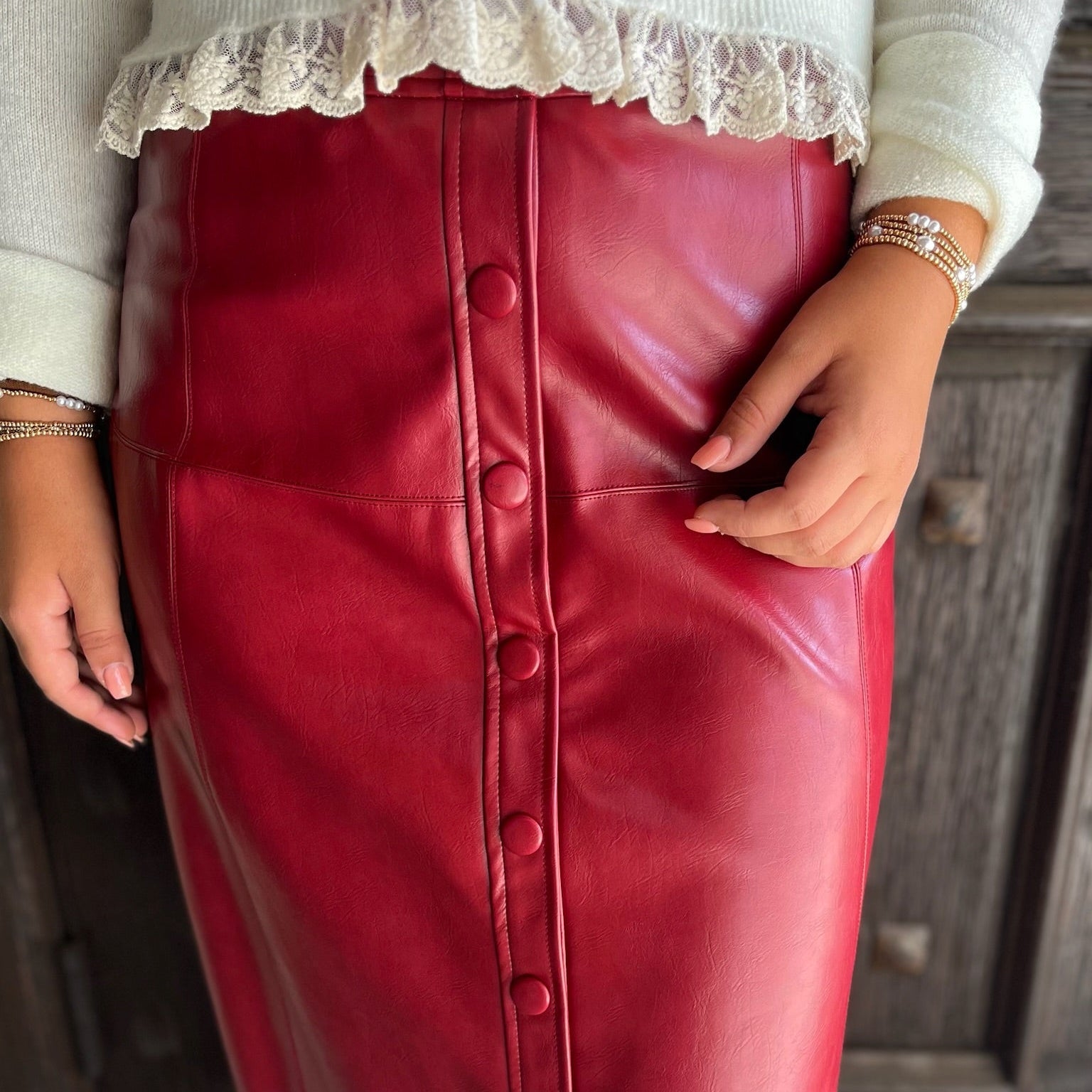 Retro Rebel Front Button Closure Faux Leather Midi Skirt - FINAL SALE