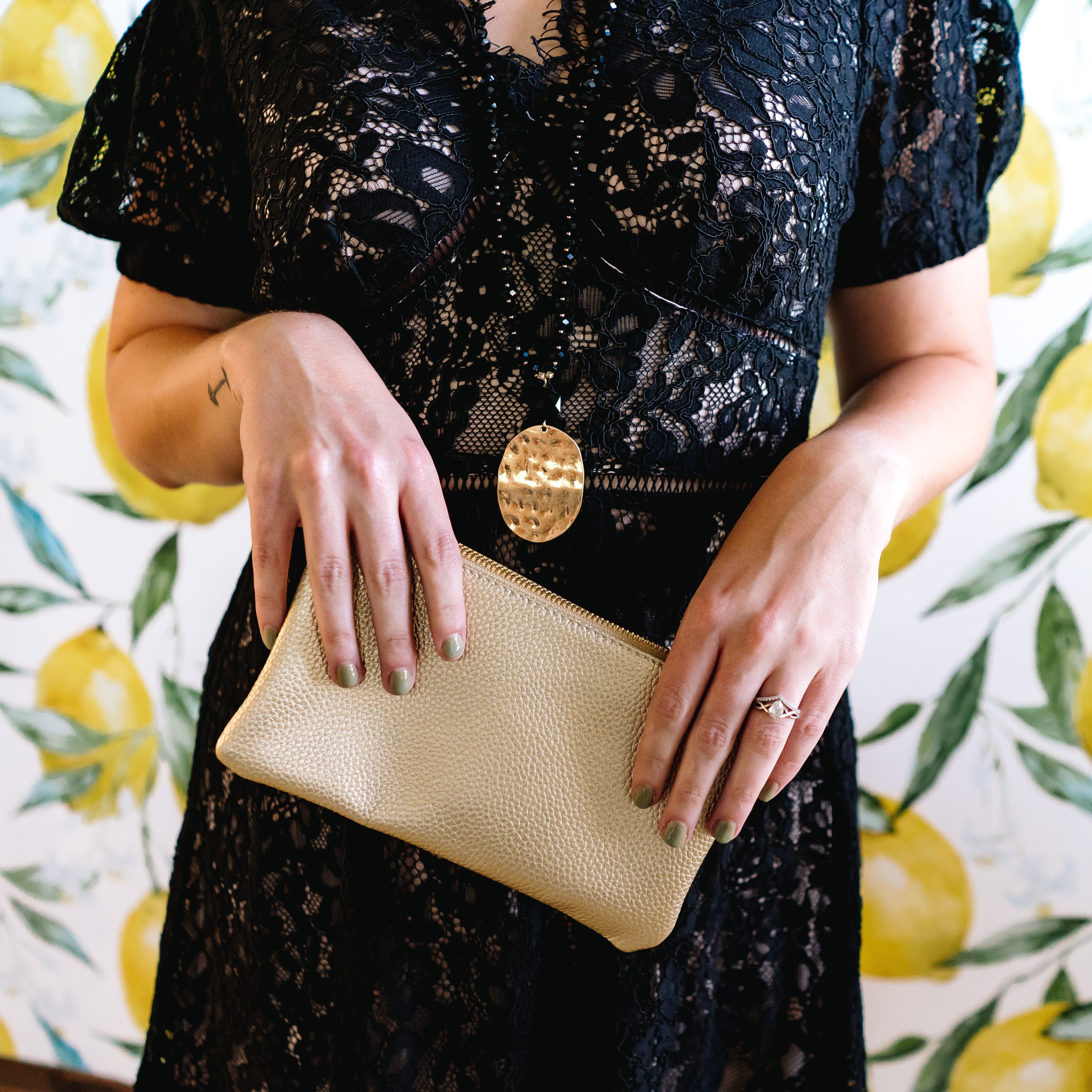 - Gold or silver tone hardware
