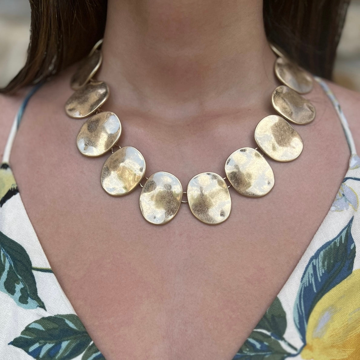 Samarie Bold Hammered Oval Necklace