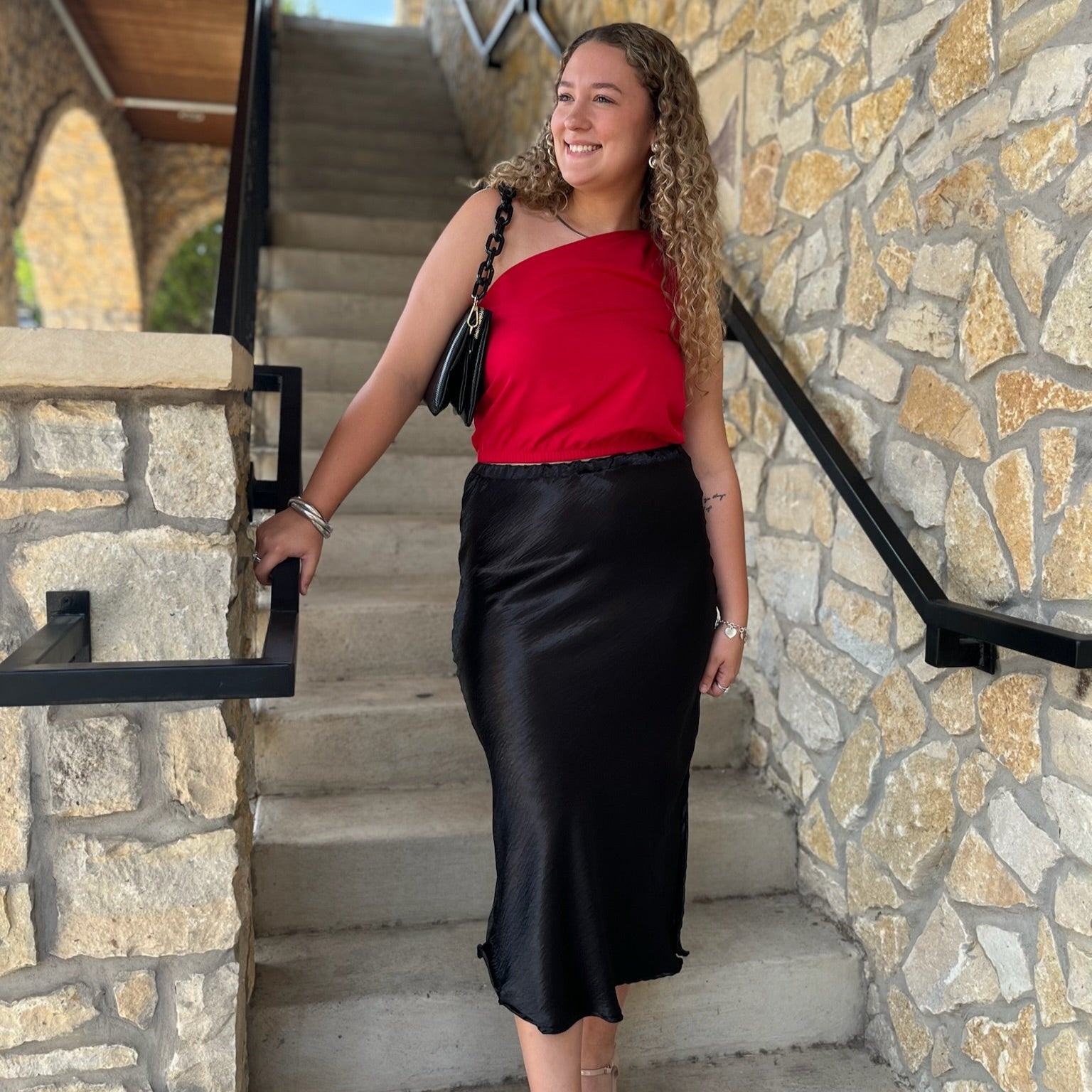 Sassy In Satin Solid Satin Midi Skirt