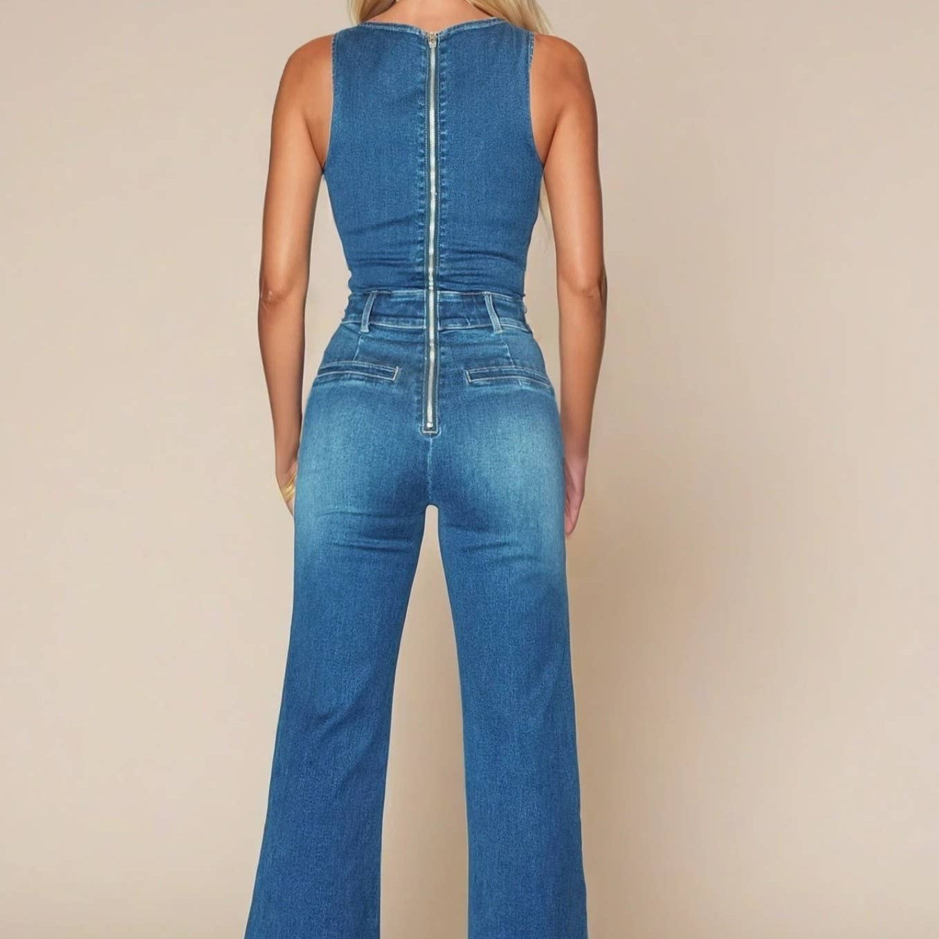 denim jumpsuit, sleeveless denim jumpsuit, wide leg jumpsuit, medium wash denim jumpsuit, western denim outfit, boho denim jumpsuit, stretchy denim jumpsuit, square neckline jumpsuit, concert outfit jumpsuit, date night denim jumpsuit, women’s denim one piece, belted denim jumpsuit, zip up denim jumpsuit, festival denim jumpsuit, trendy denim jumpsuit
