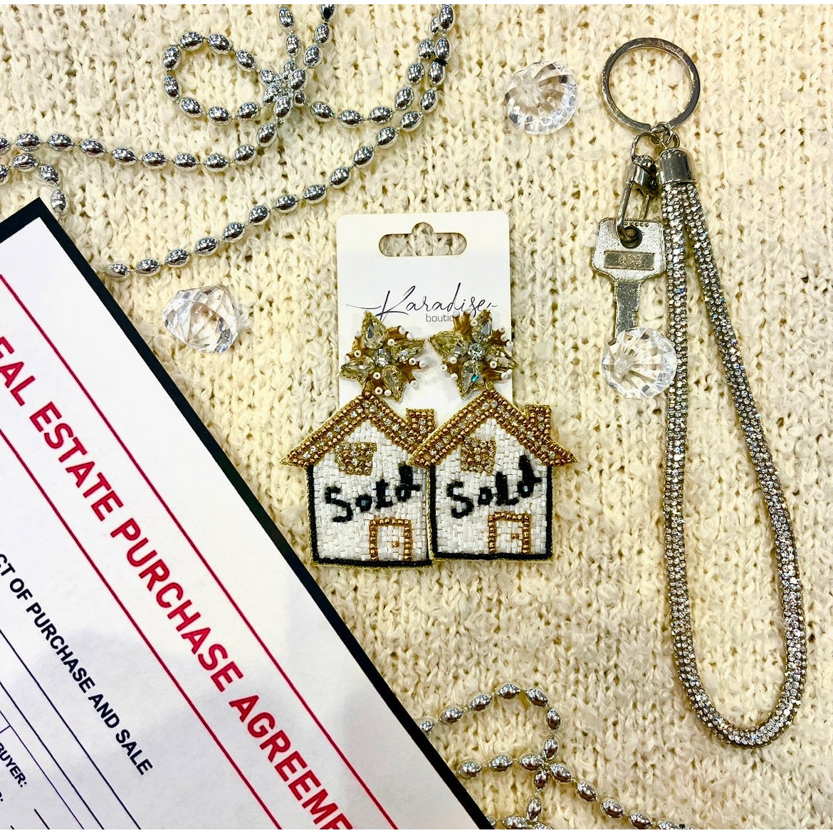 - Beaded house earrings that say sold