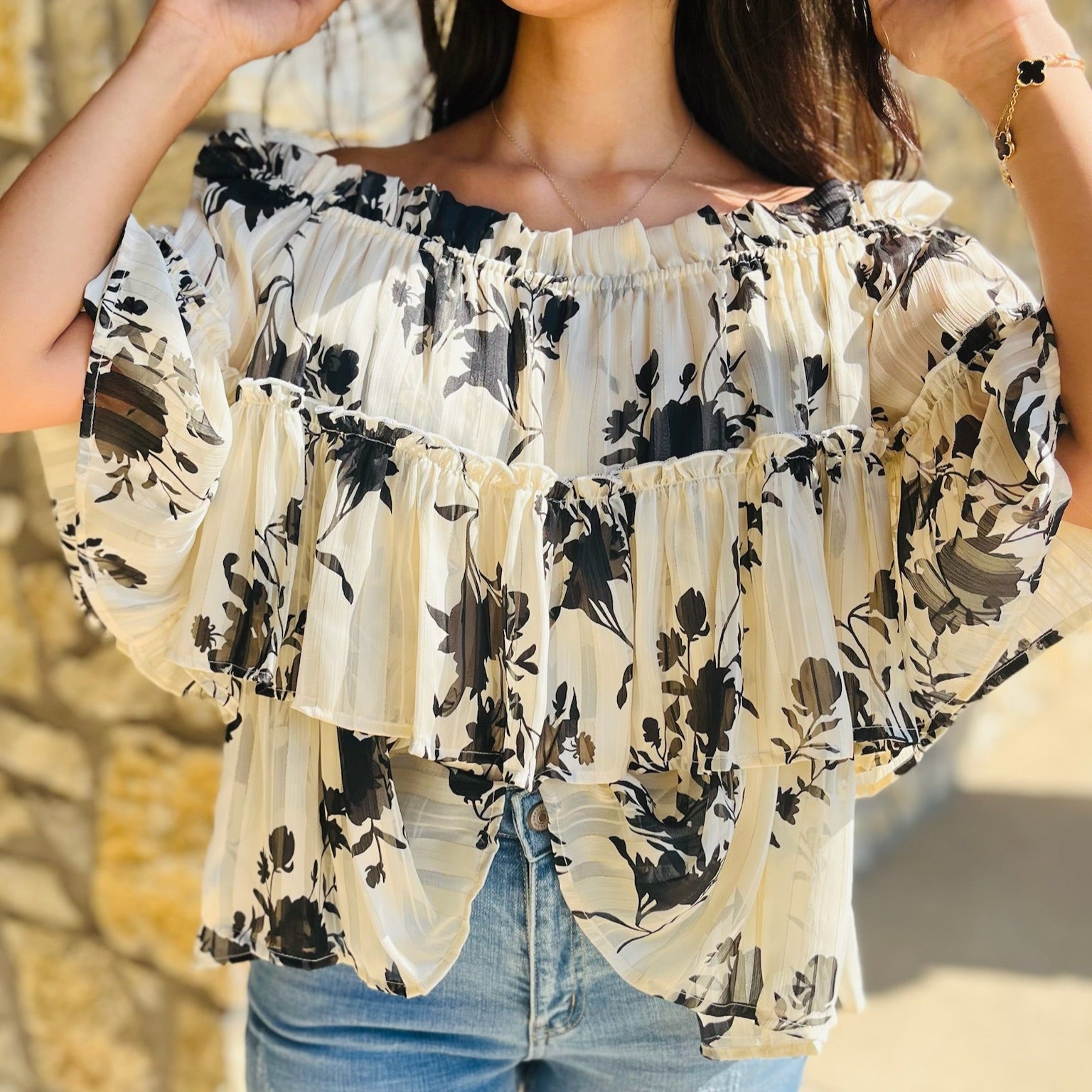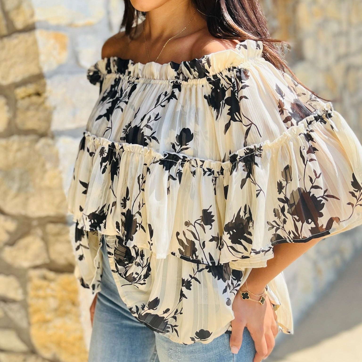 - Feminine & floral comes to life in this gorgeous top! The off the shoulder top adds a fun twist in addition to the floral print!