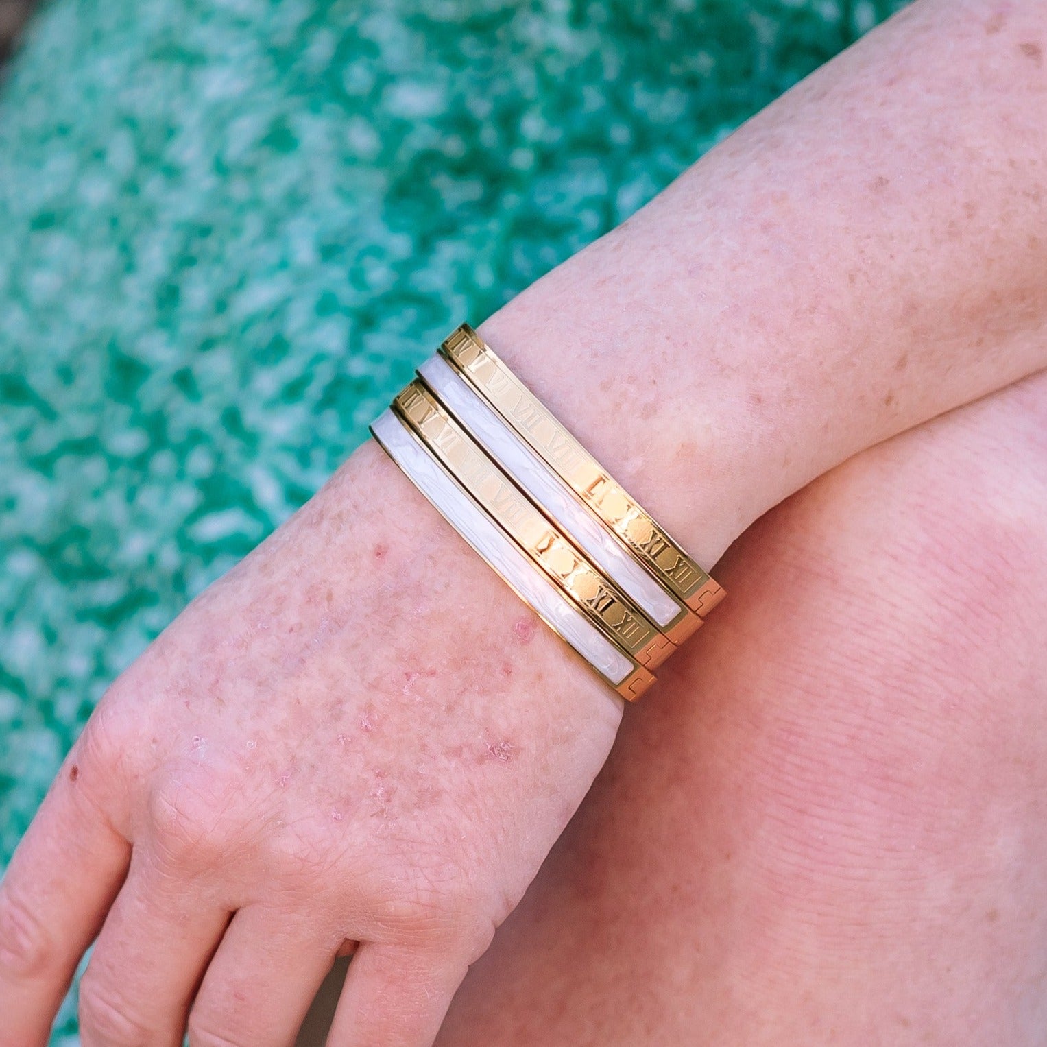 Gold bracelet, silver bracelet, gold cuff bracelet, silver cuff bracelet, roman numeral bracelet, roman numeral bracelet cuff, roman numeral cuff, gift for teens, small gift, gift for twins, bracelet stack, stacked bracelets