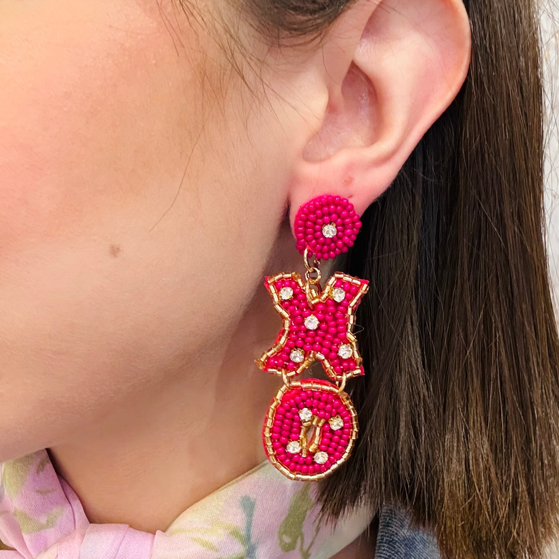 - XO with pink heart beaded earrings